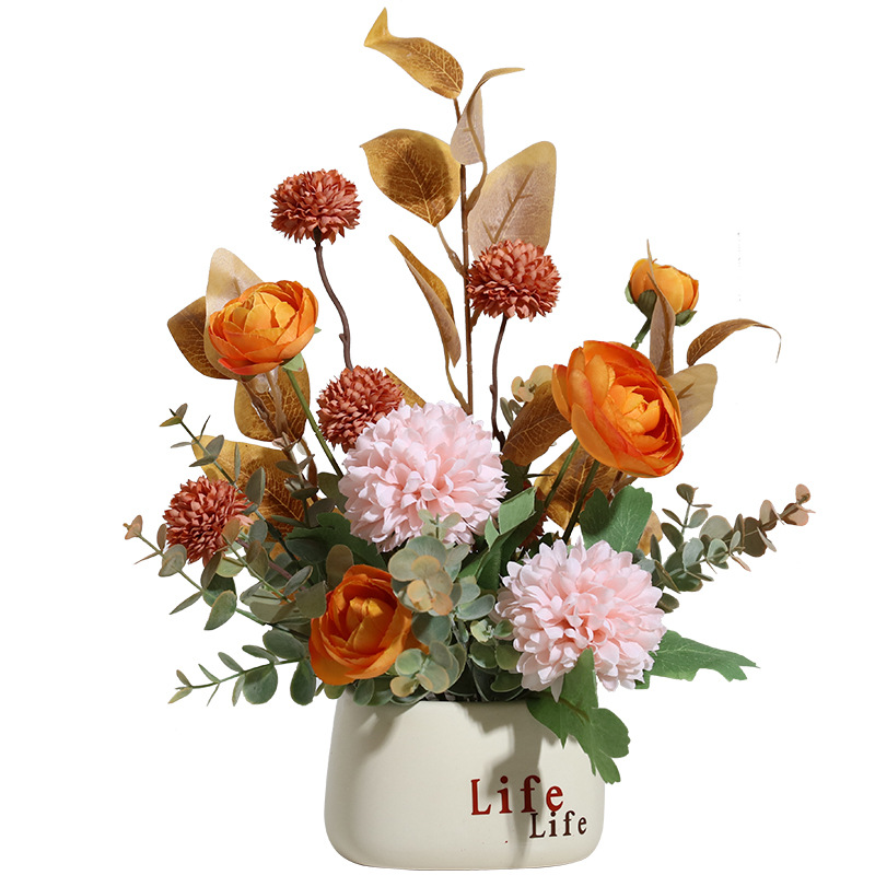 orange four-headed lotus pot
