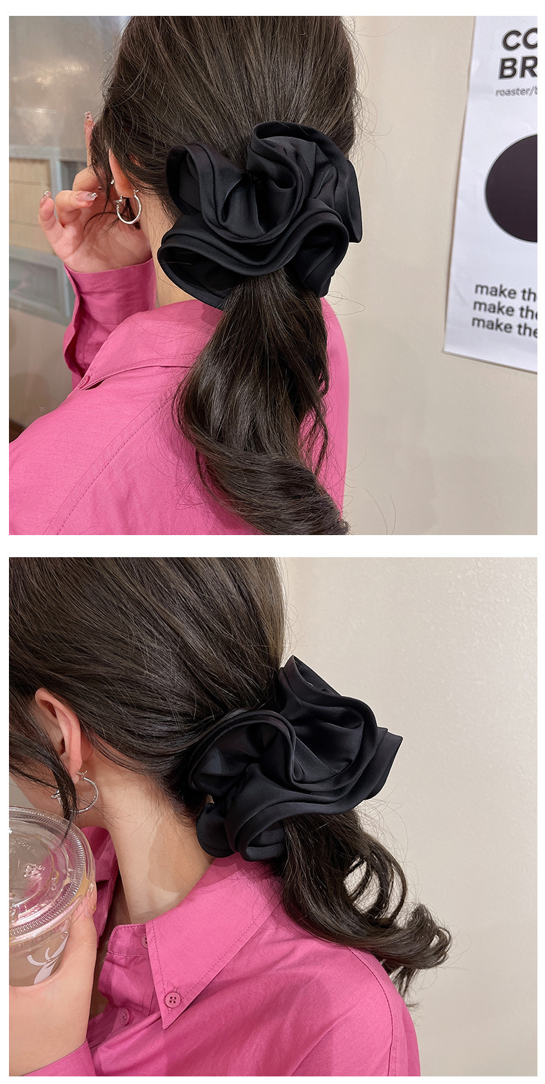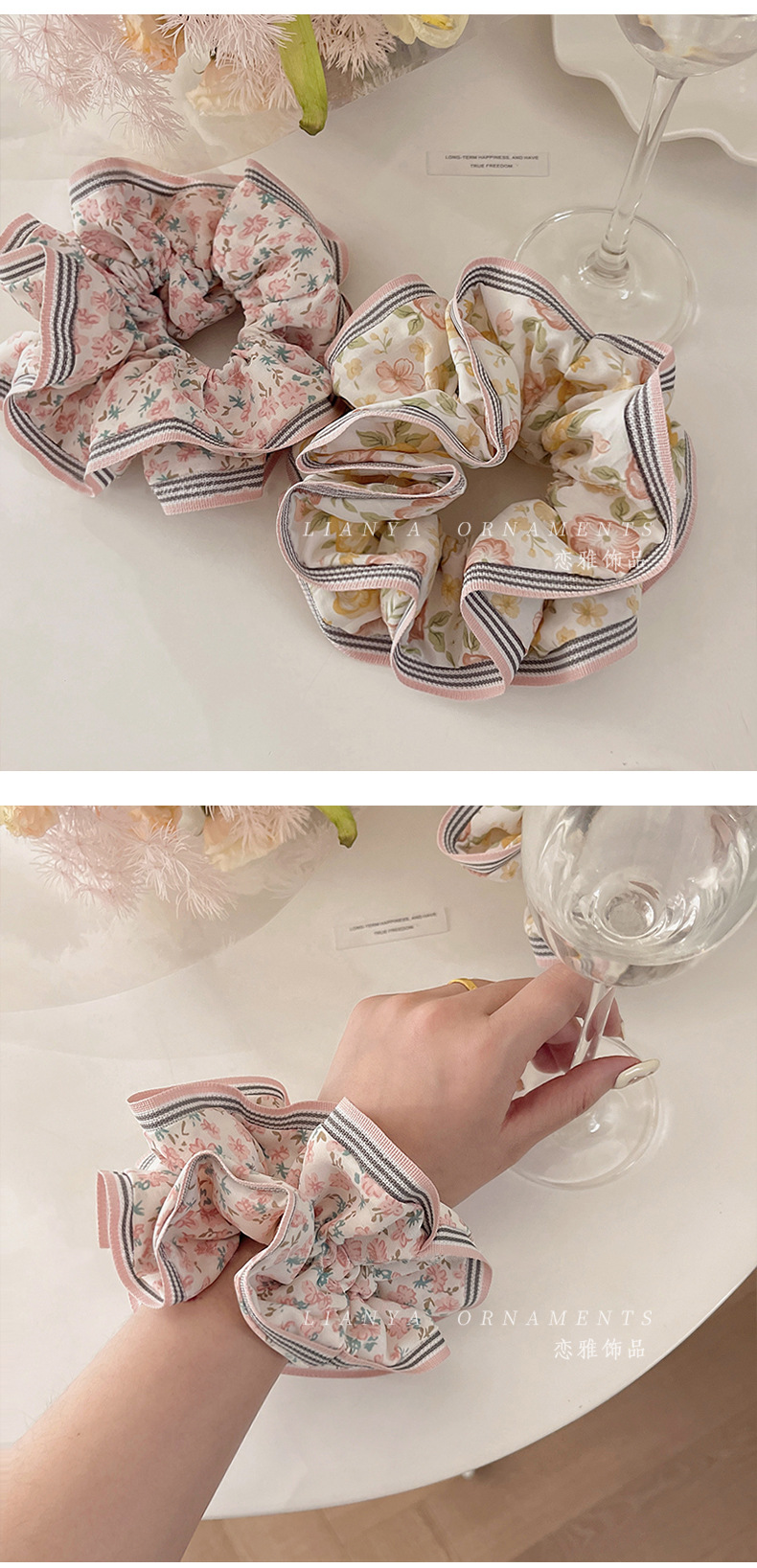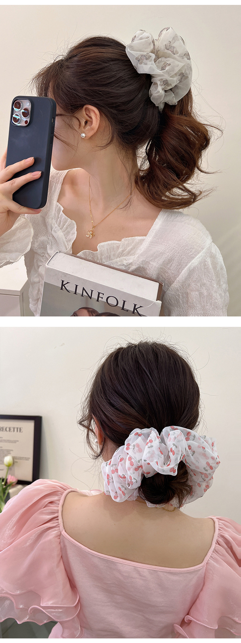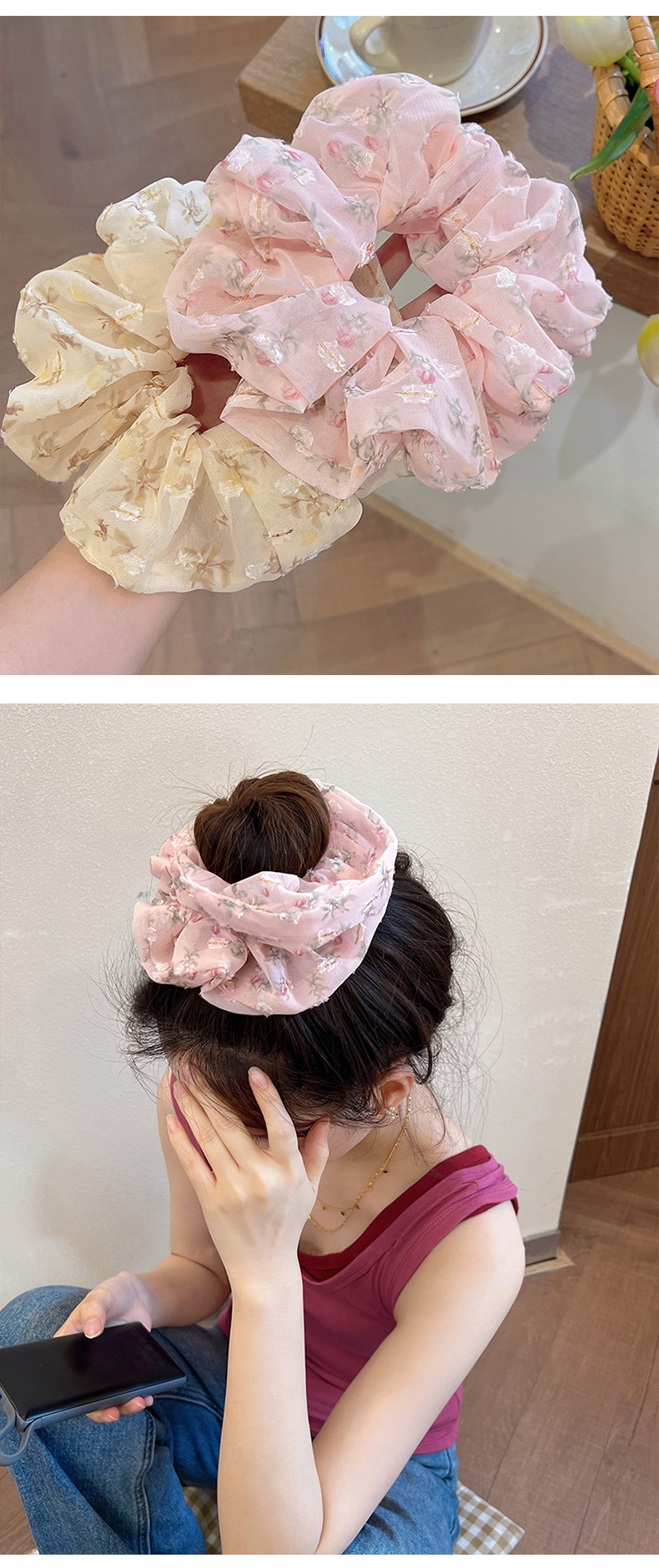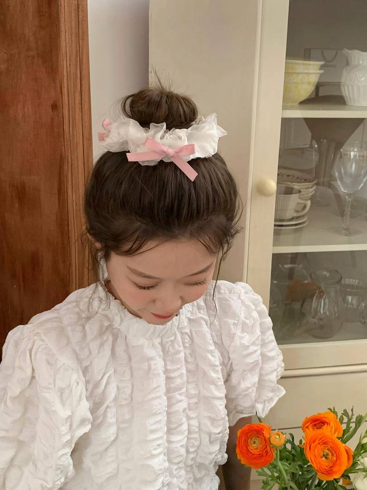 French Double-Layer Large Intestine Hair Band Ins High-Grade Satin Headband Women's Simple Temperament Hair Rope Polka Dot Floral Sausage Ring