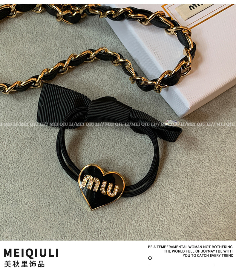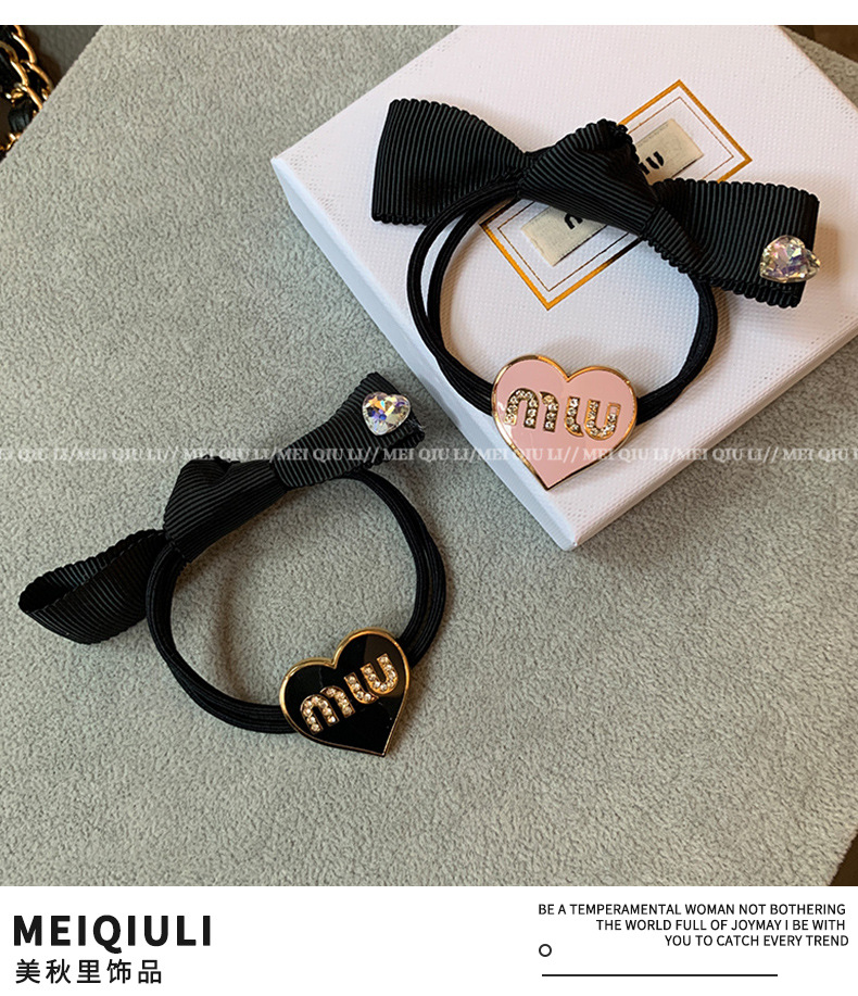 Internet Hot New Simple Love Letter Bow Hair Rope Korean Style All-Matching Graceful Rhinestone Heafrope Hair Band