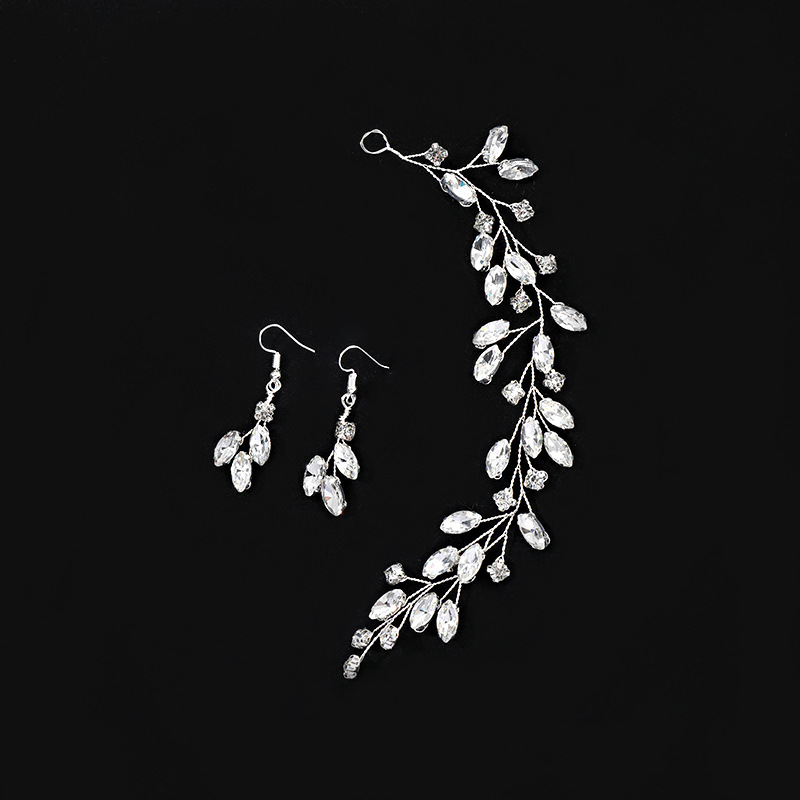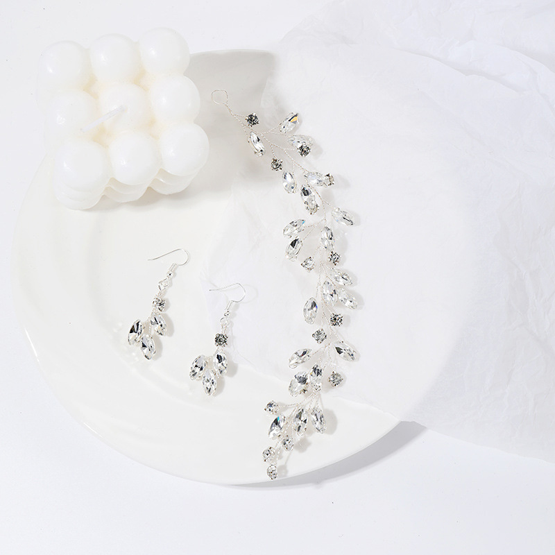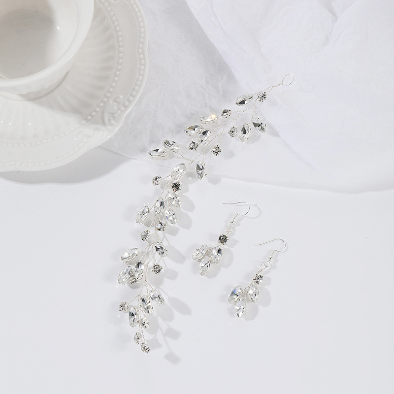 L5018 Luo Silver Bridal Pearl Headdress Crystal Pearl Leaf Hair Band Set Headdress Party Wedding Hair First