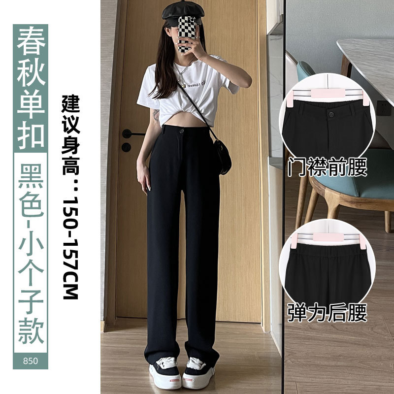 [single button pleated] black cropped-autumn straight tribute fabric: s (40.00 kg-45.00 kg