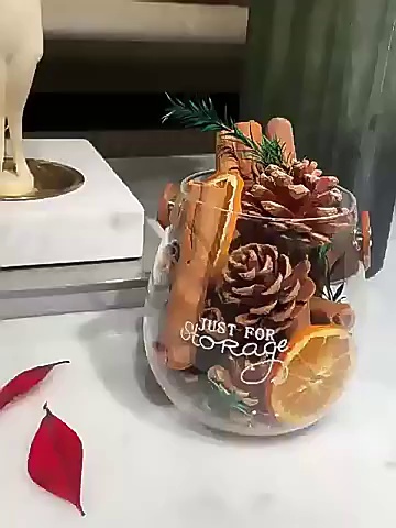 Natural dried fruits: cinnamon, wheat straw chrysanthemum, pine cones, and various dried flower materials.