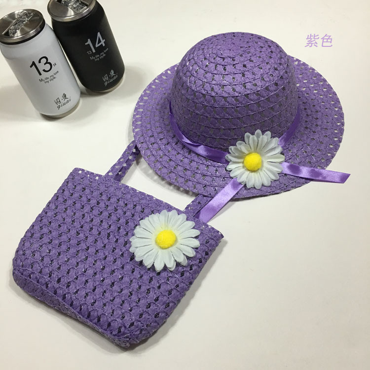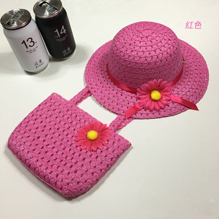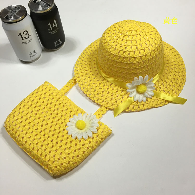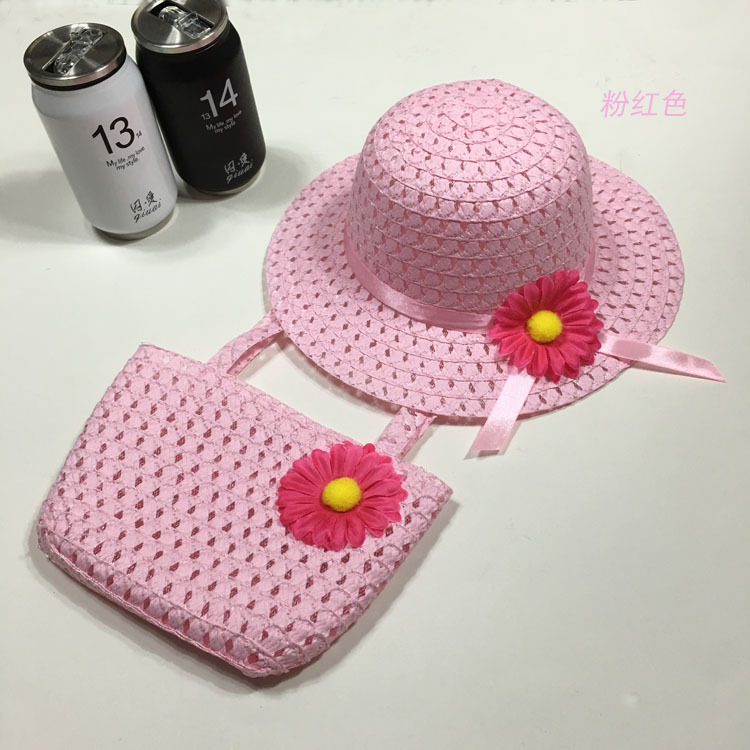 foreign trade summer fashion little girl straw hat princess hat sun protection sun hat children cool hat carry bag