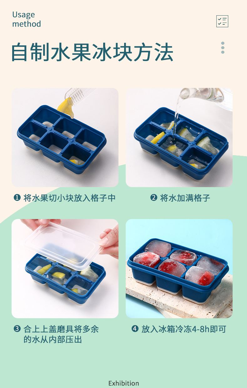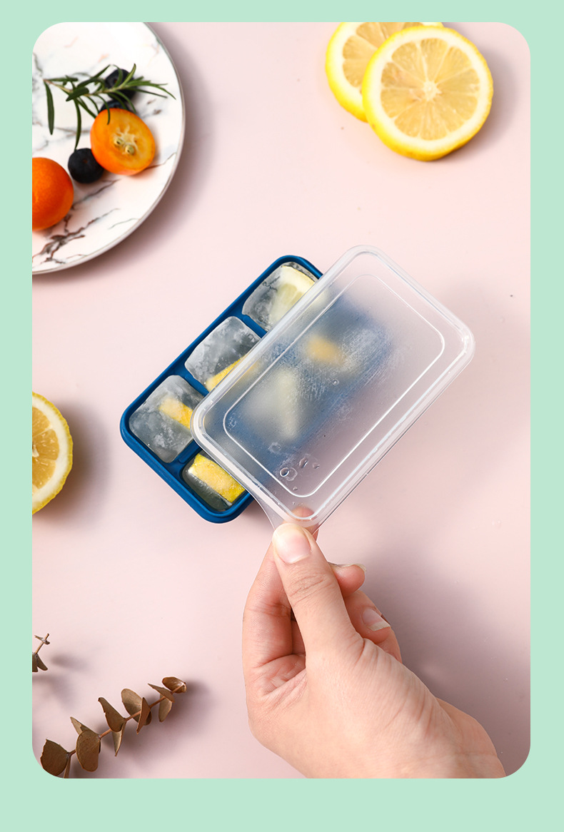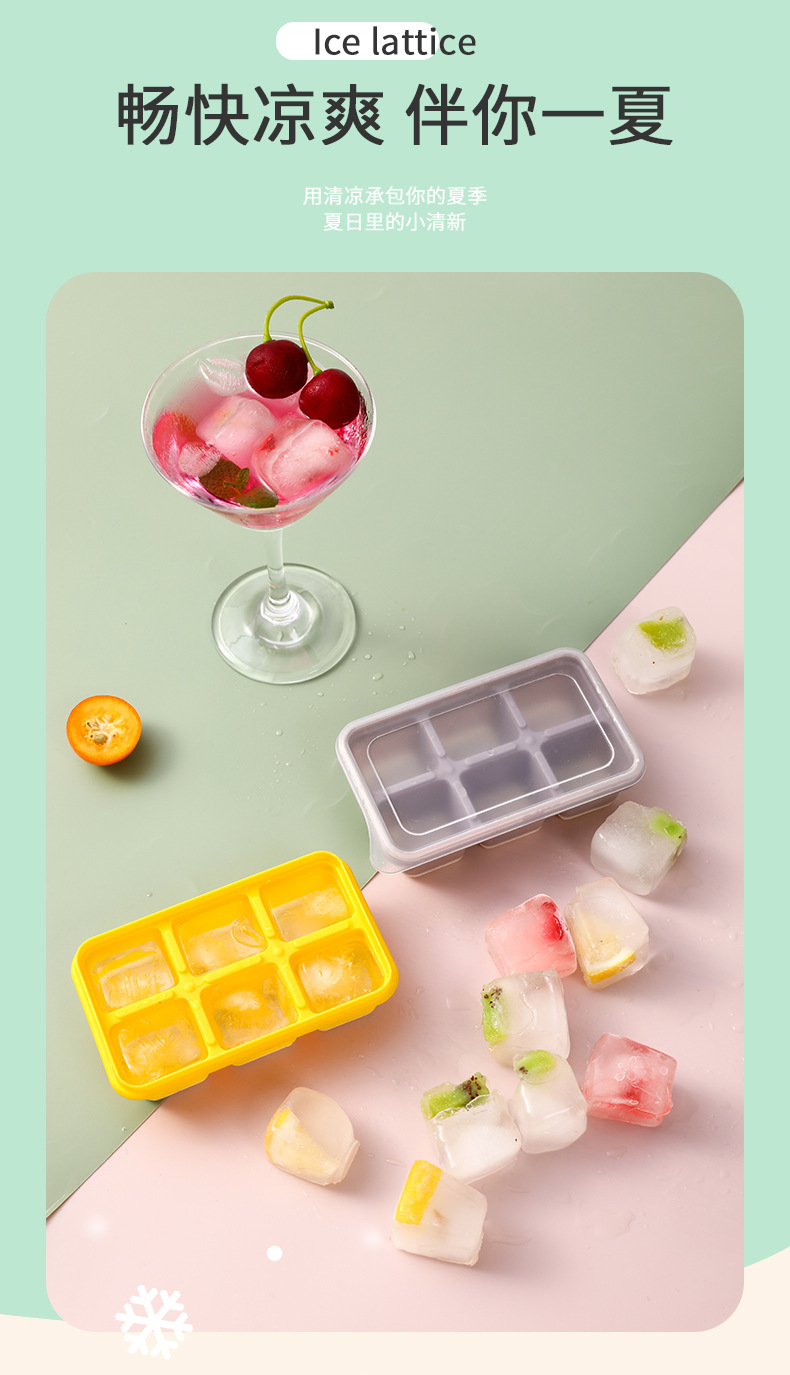 Nordic Mini 6-Grid Multi-Functional Dustproof Ice Tray with Lid Household Transparent Ice Maker Soft Bottom Pp Ice Cube Mold