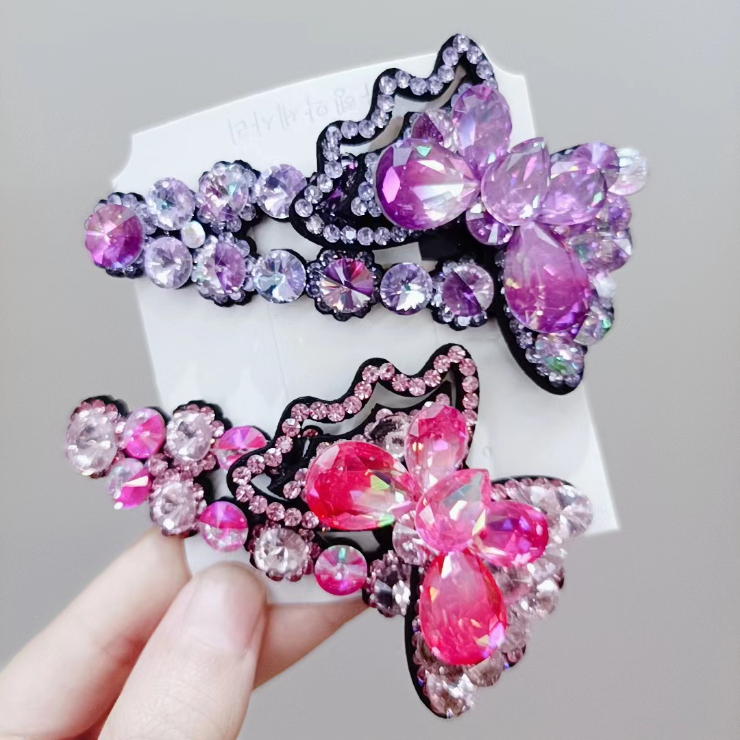 Korean Hairpin New Crystal Butterfly Break Clip BB Clip Bang Clip Bar Clip Side Clip Girls Factory Spot