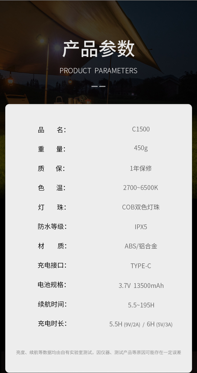 C1500 Camping Lamp Camping Lamp Rechargeable Tent Lamp Camping Lamp Outdoor Led Outdoor Lighting Lamp