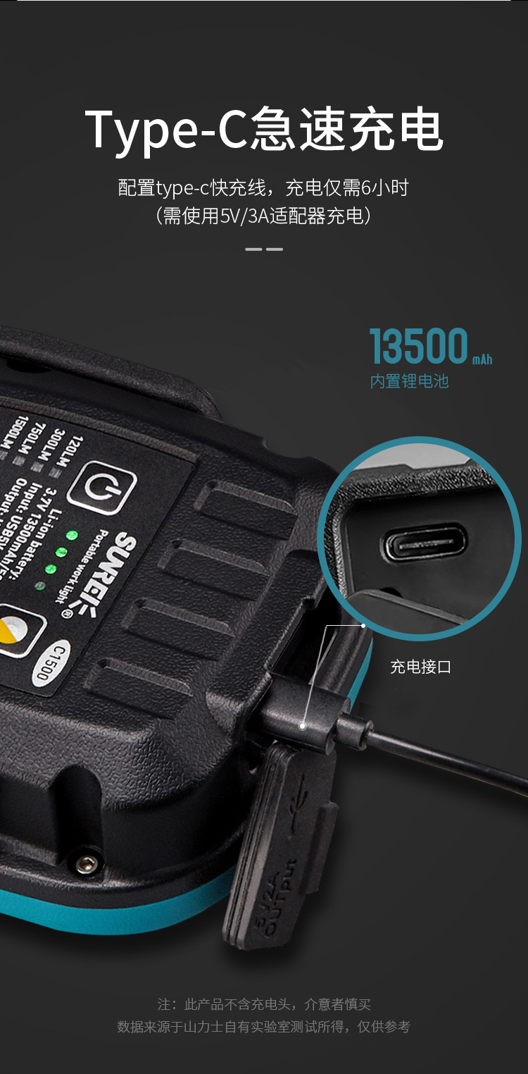 About Product:Commodity property brand attraction light source type LED power charging aux switch type button number c1500 specification built-in 13500 mA battery origin China color peacock blue, extreme Gray, Chinese red, fluorescent green main downstream platforms China, ebay, Amazon, wish, AliExpress, independent station, LAZADA main sales areas China, Africa, Europe, South America, Southeast Asia, North America, northeast Asia, Middle East have authorized own brands whether cross-border export exclusive supply