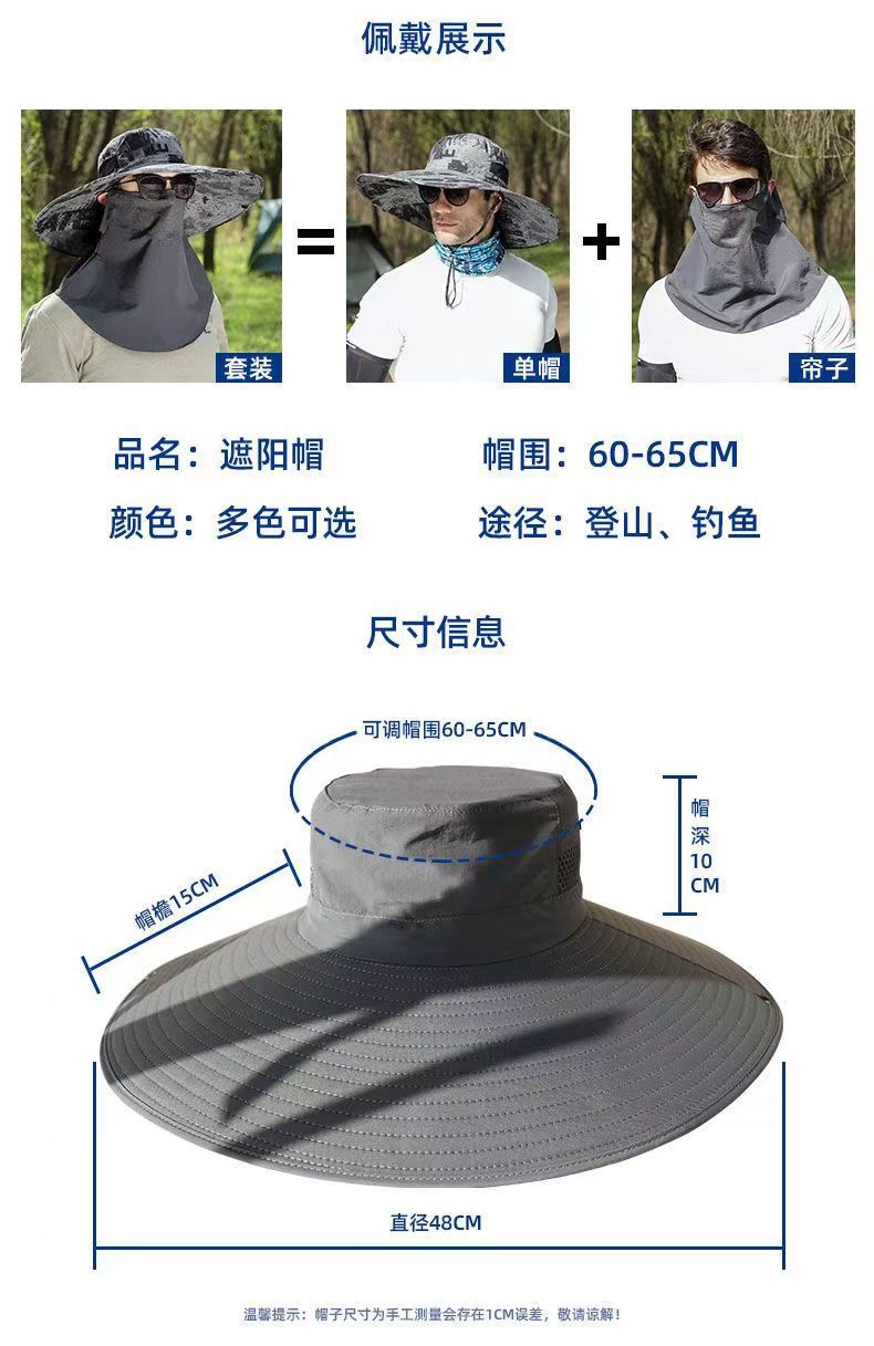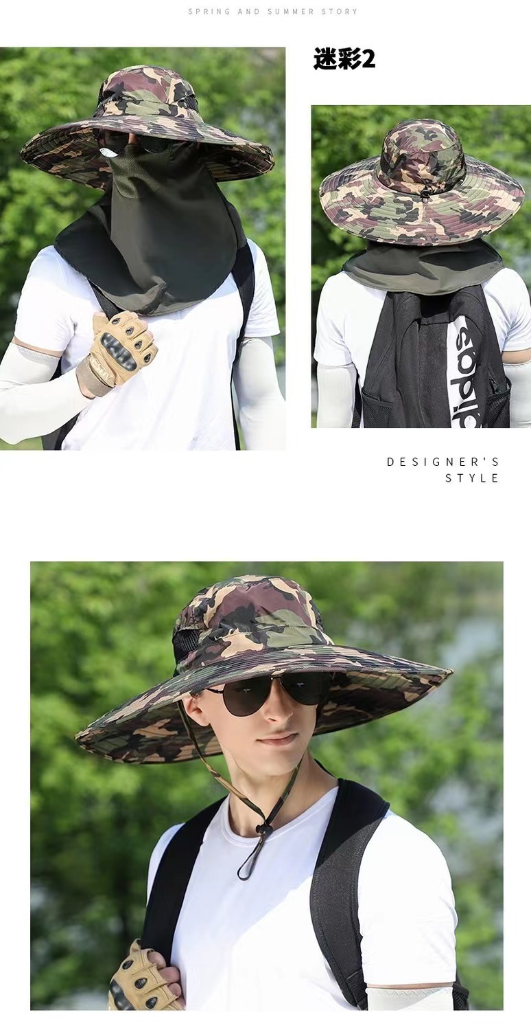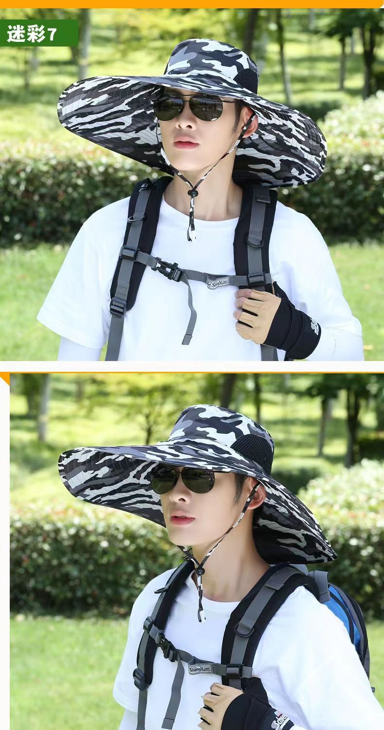 Summer Men's Hat Outdoor Sun Hat 15cm Big Brim Fishing Hat Sun Protection Hat Mountaineering Sun Hat Foldable Snap Button
