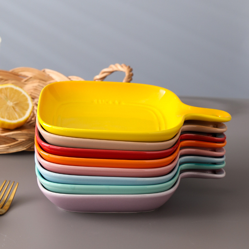 colorful plate with handle gradient western food plate microwave oven single handle baking tray