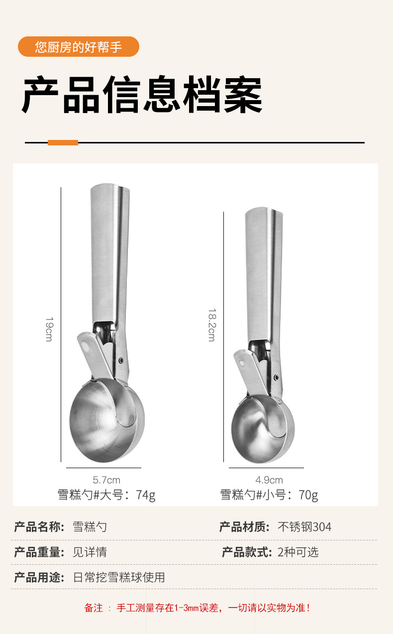 Stainless Steel Dual Purpose Ice-Cream Spoon Ice Cream Spoon Ball Scoop Multifunctional Ice Cream Ball Scoop Ice Cream Fruit Spoon