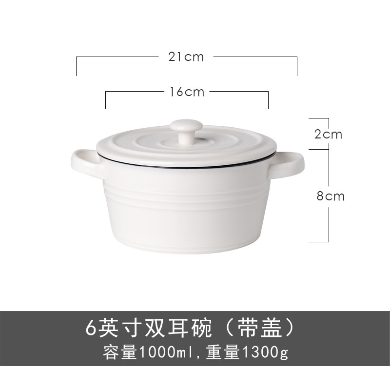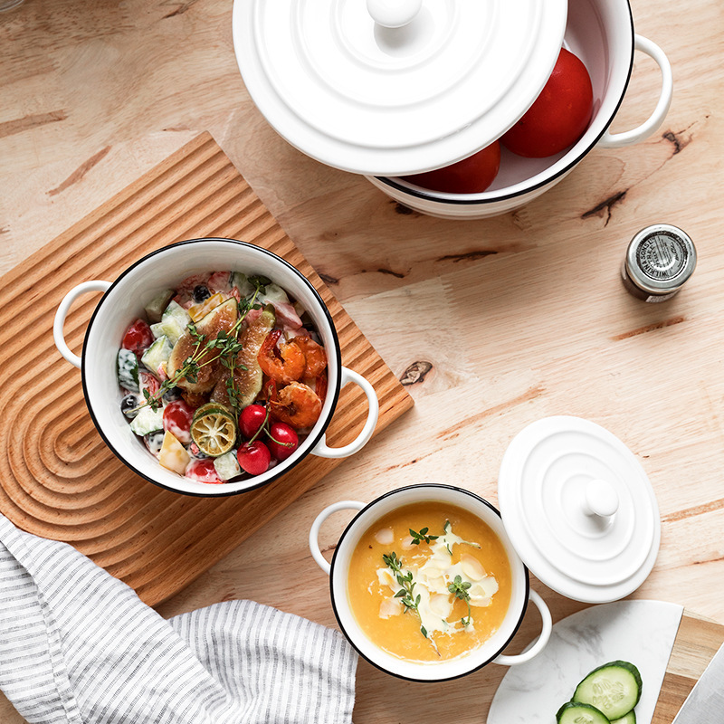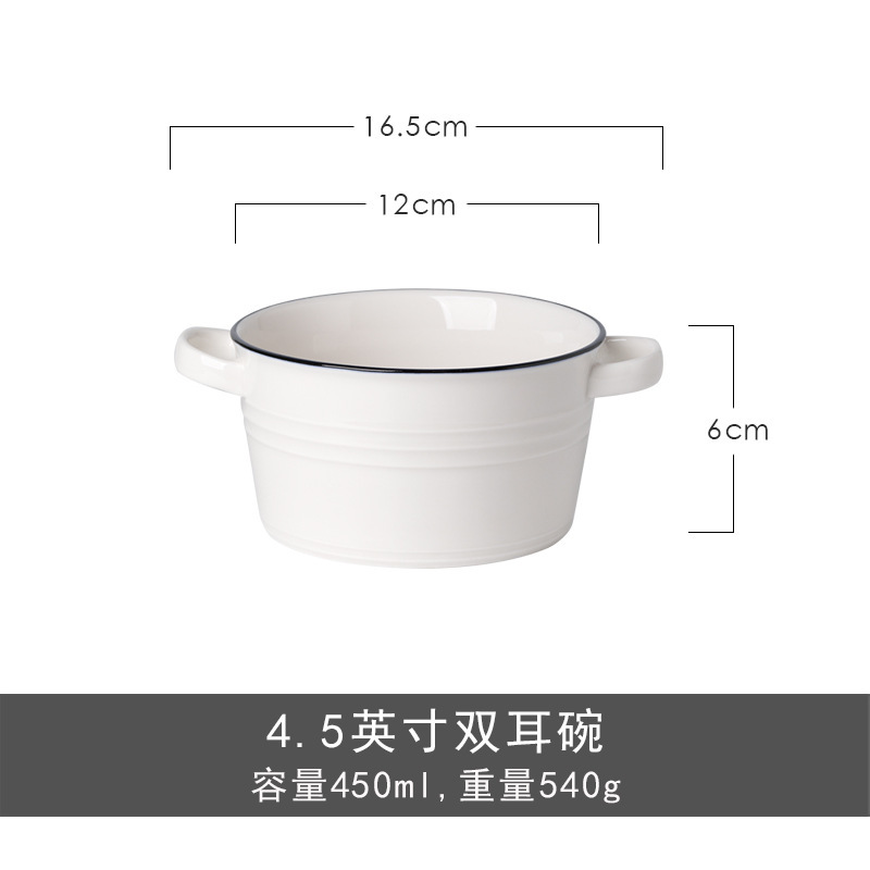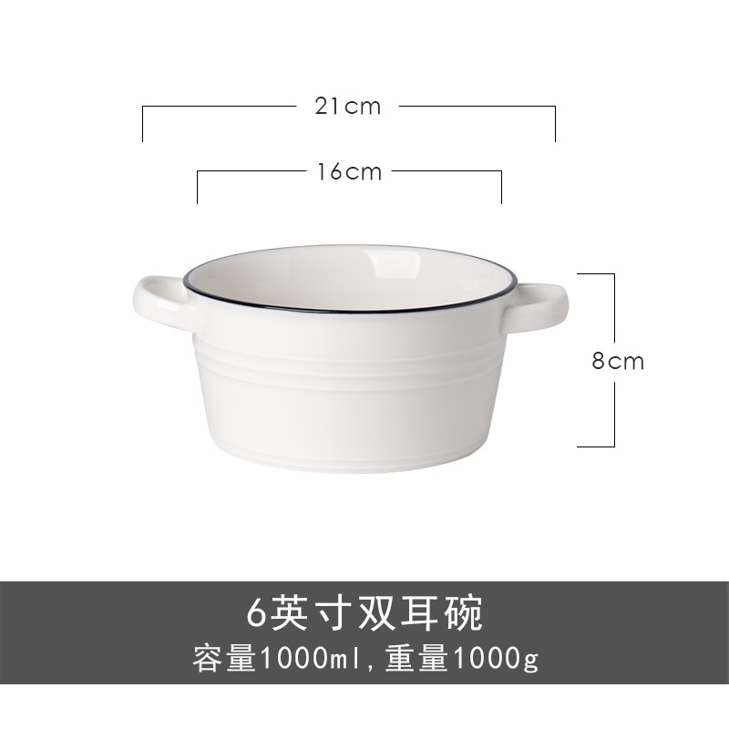 nordic ceramic double-ear bowl salad bowl fruit soup bowl dessert breakfast bowl household tableware