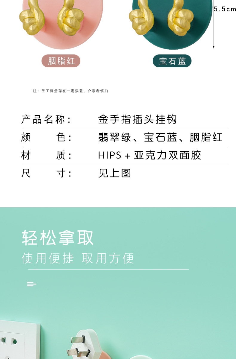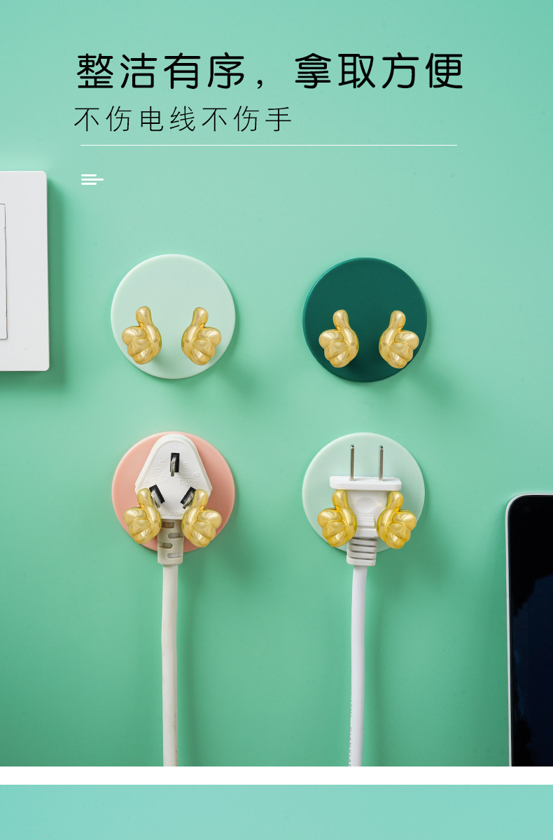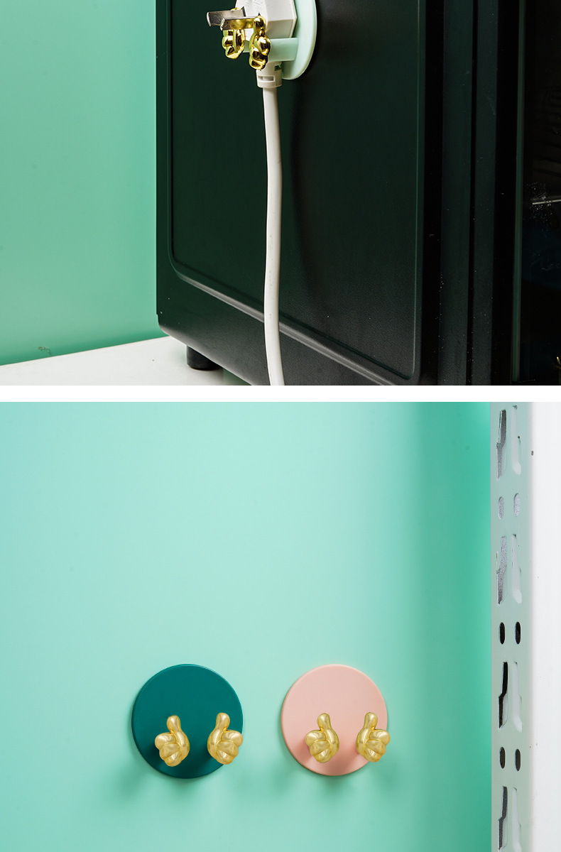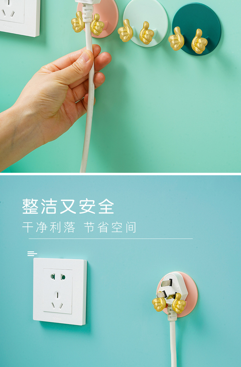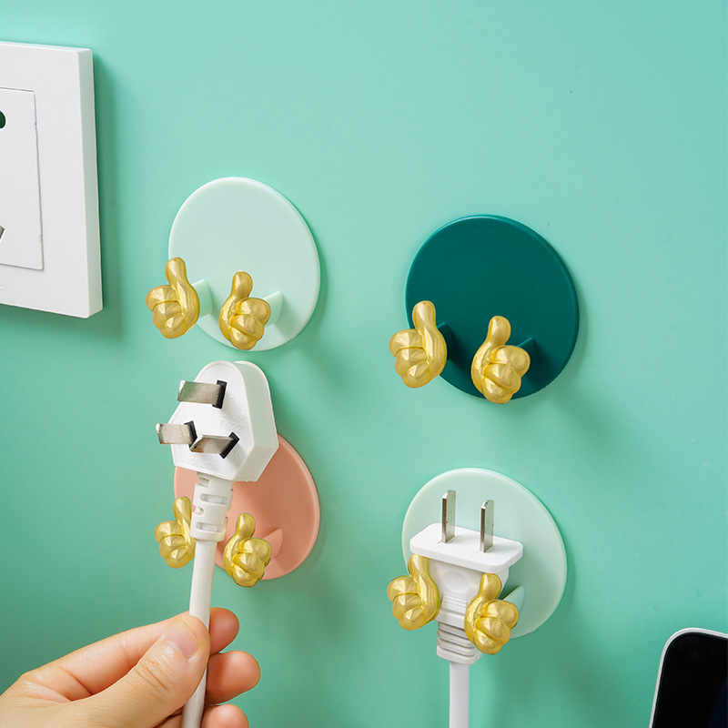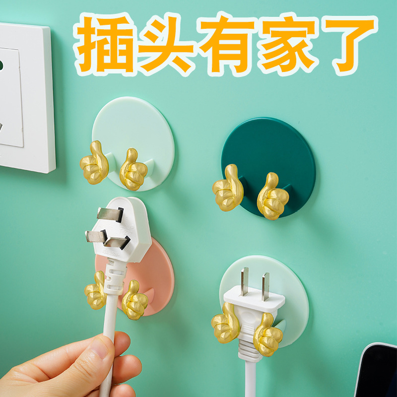 Cartoon Creative Gold Finger Plug Hook Punch-Free Strong Adhesive Hook Kitchen Wall Hanging Storage Power Cord