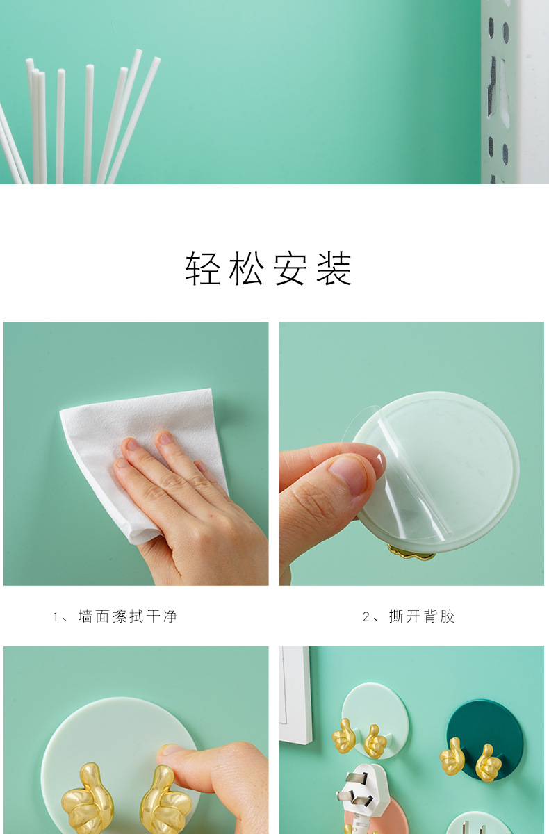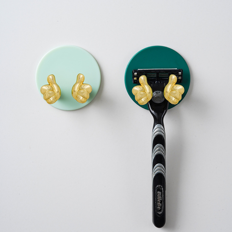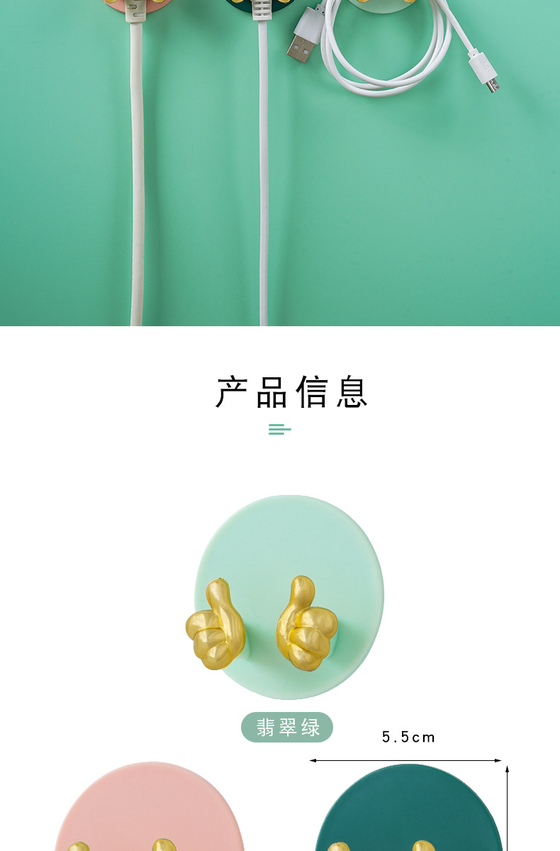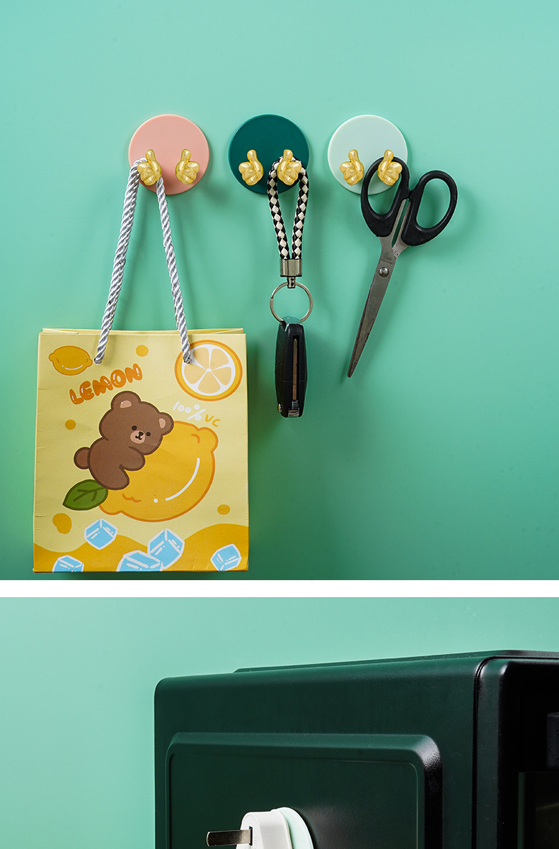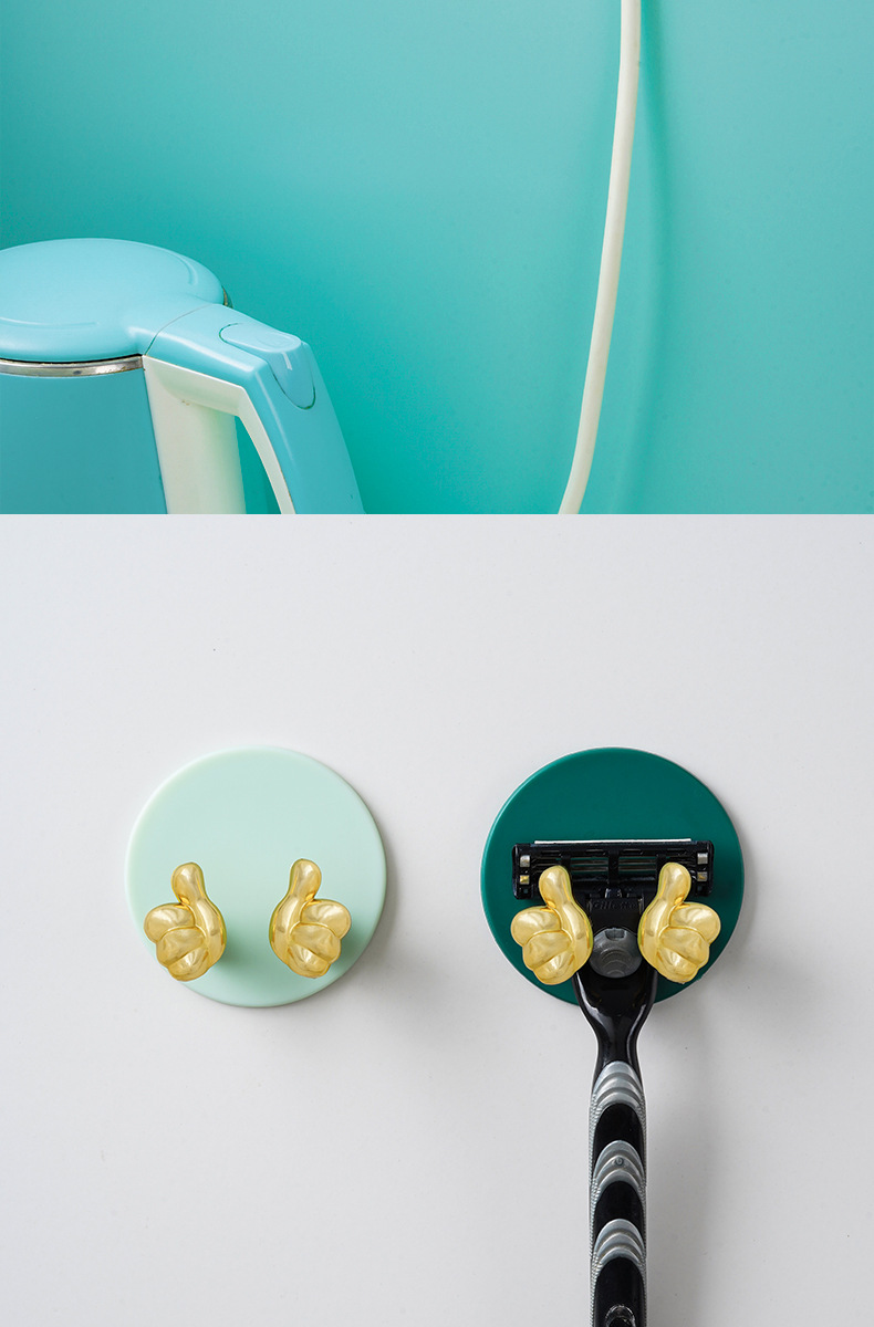 Cartoon Creative Gold Finger Plug Hook Punch-Free Strong Adhesive Hook Kitchen Wall Hanging Storage Power Cord