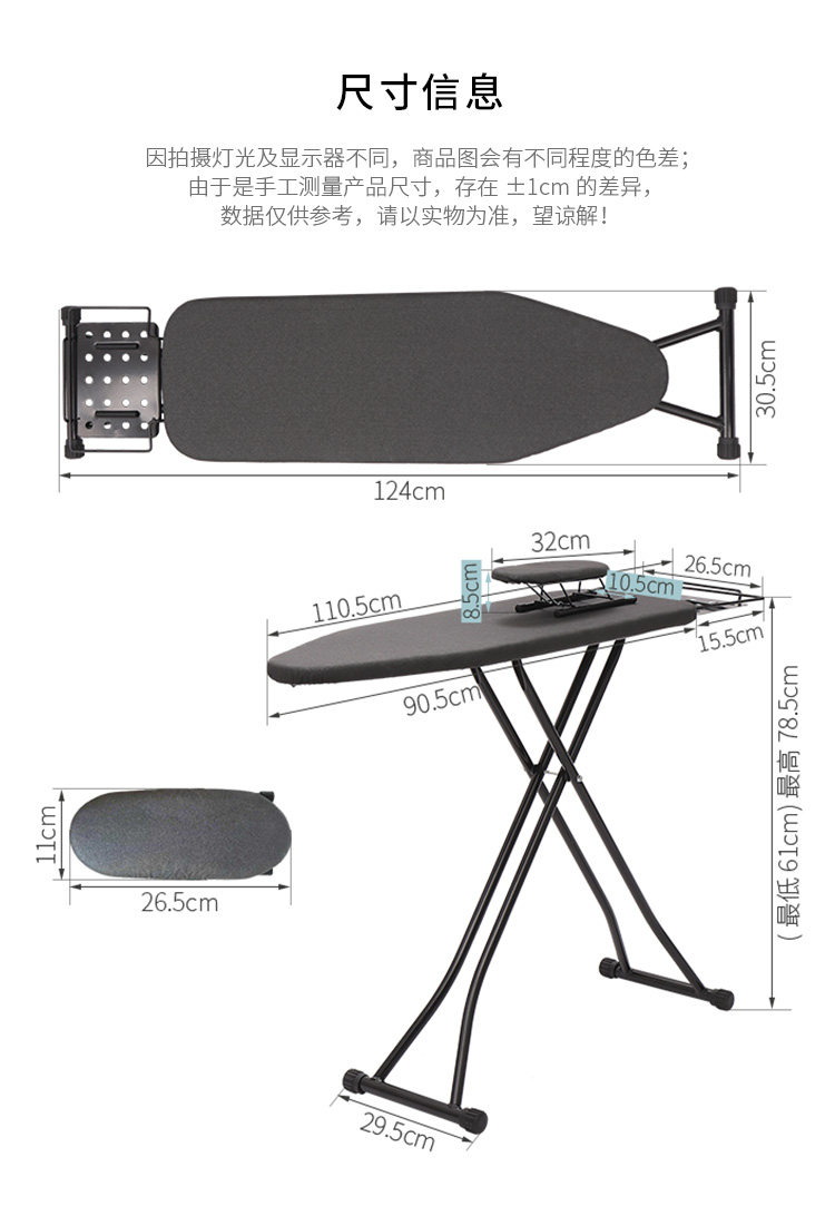 Ironing Board 42 inches, Black Heat-Resistant Fabric, Ironing Set for Home Use, Folding Stand, Table-Top Ironing Board