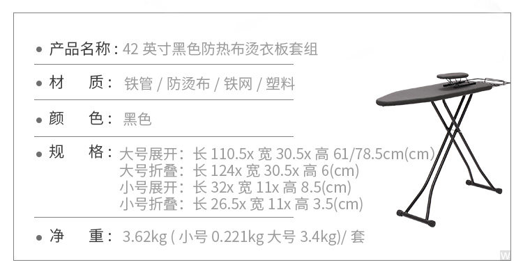 \ \108062 Black 42-inch Heat-resistant Fabric Ironing Board Set Single Set