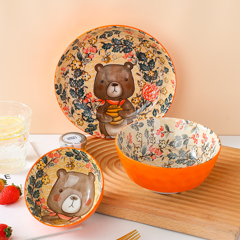ceramic rice bowl animal forest soup bowl breakfast bowl restaurant bowl plate cartoon tableware suit