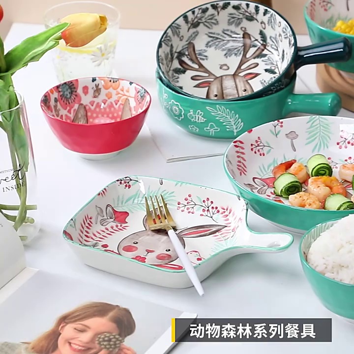 salad bowl animal cartoon breakfast bowl restaurant baking pan handle bowl cute ceramic tableware