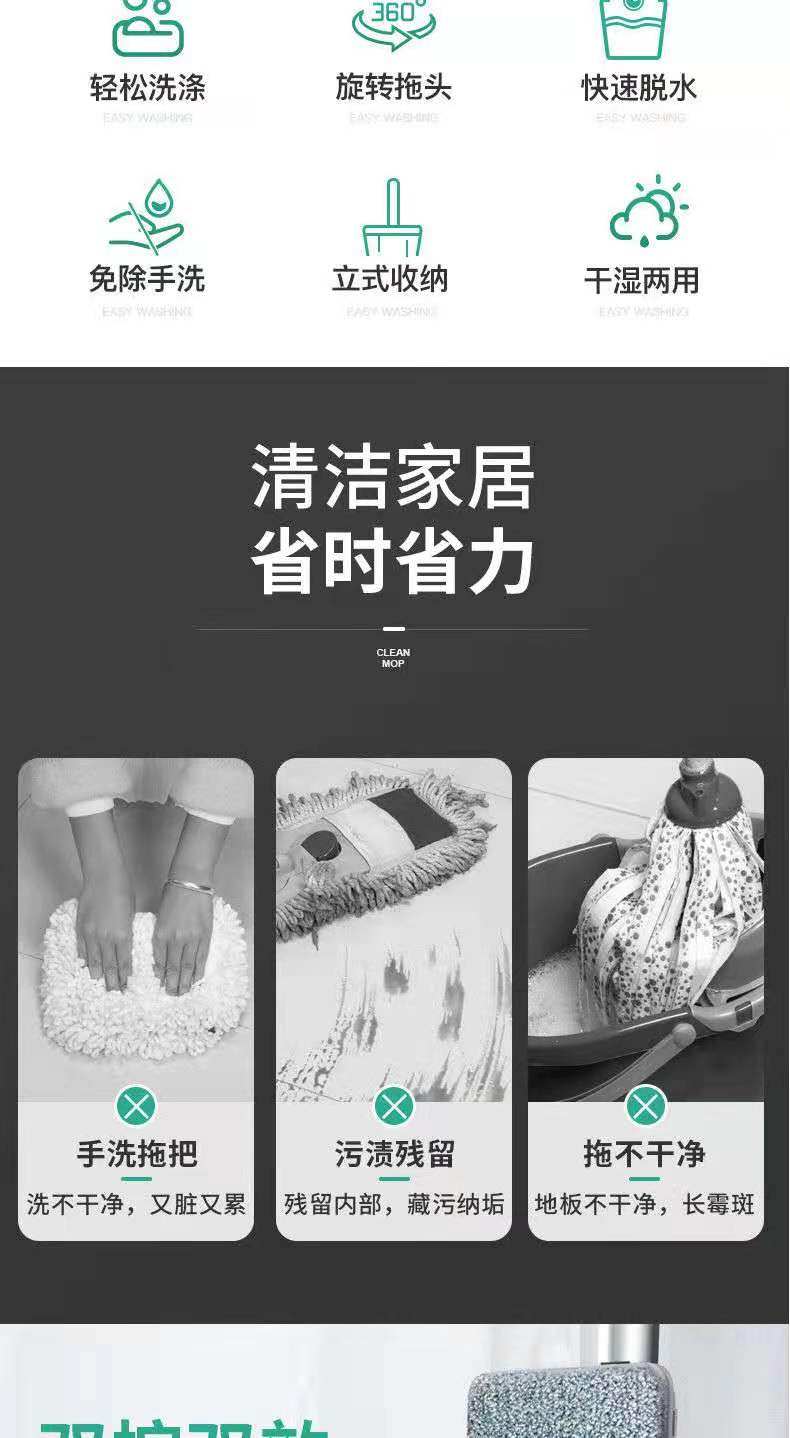 imported scratch-off mop hand wash-free internet celebrity mop household mop 2023 new tile mop no water marks