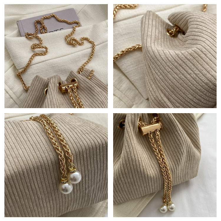 About Product:Wholesale bag spring fashion corduroy pull-belt small bucket women's bag 2023 high-grade shoulder messenger bag