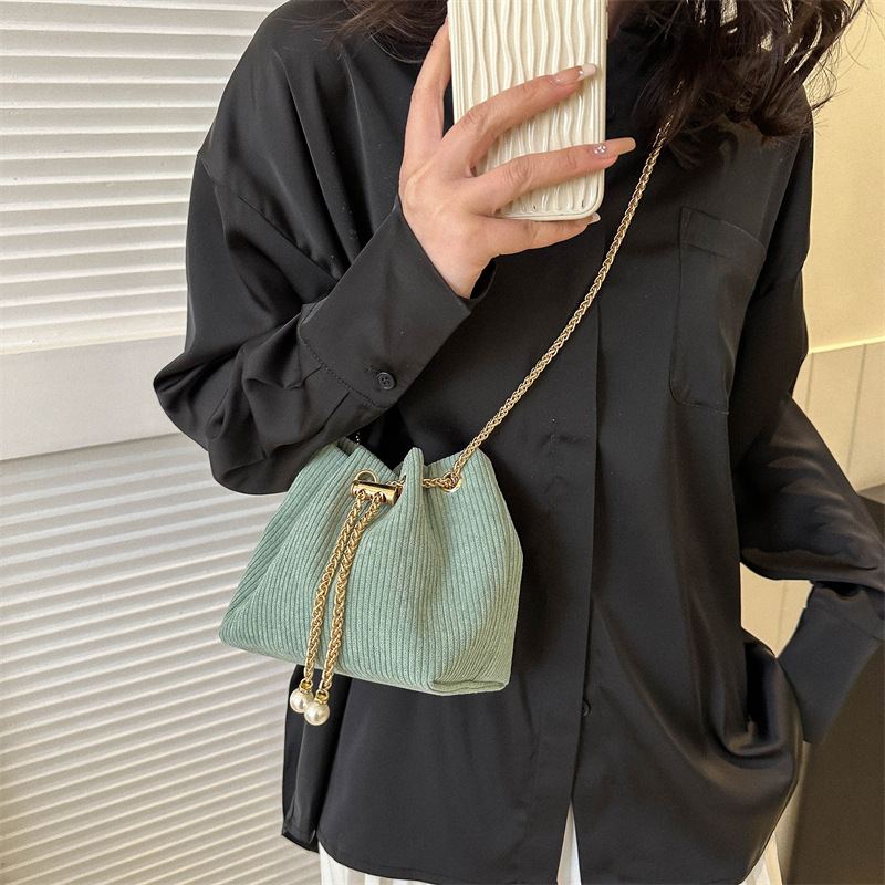 Wholesale bag spring fashion corduroy pull-belt small bucket women's bag 2023 high-grade shoulder messenger bag