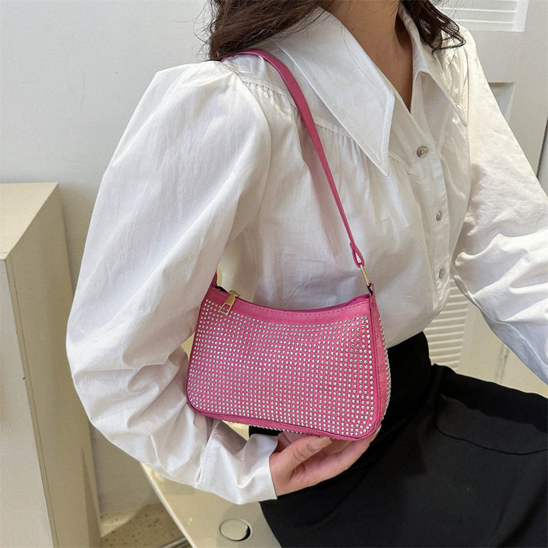 About Product:Korean style popular light diamond bag women's bag2023 spring fashion underarm small square bag ins minority simple shoulder bag
