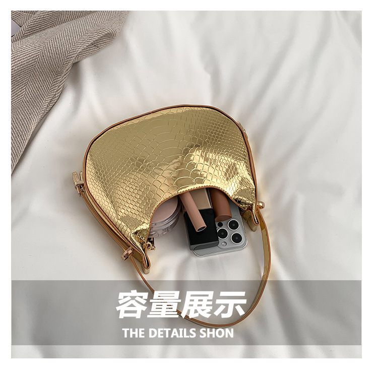 About Product:Popular laser glossy crocodile pattern Crescent bag women's bag 2023 Summer affordable luxury fashion underarm shoulder bag wholesale