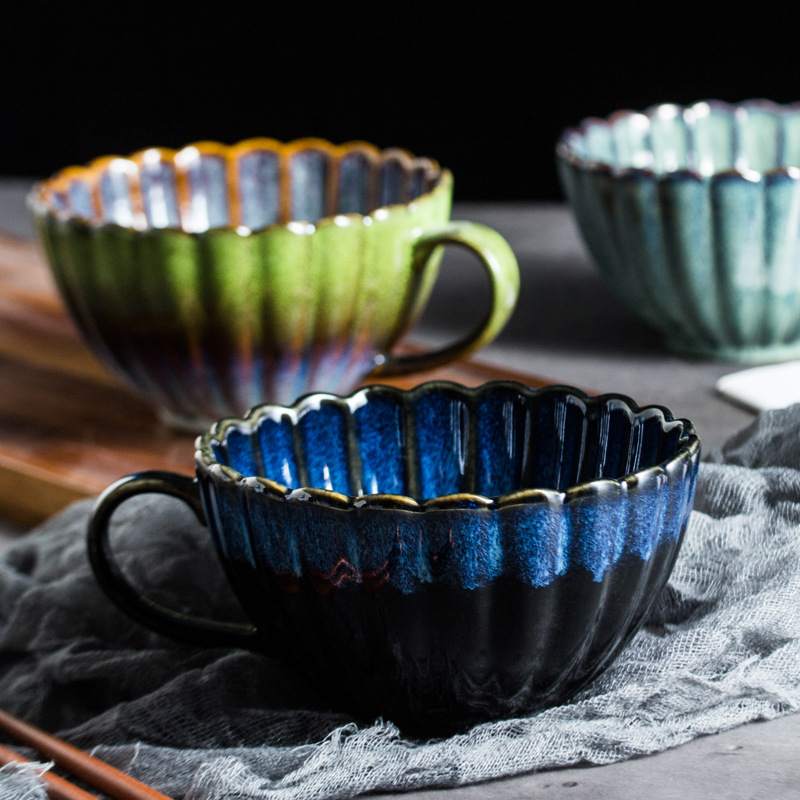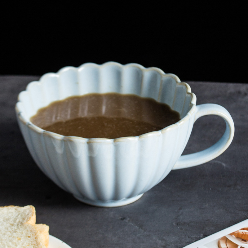 chrysanthemum pattern kiln change ceramic cup household large capacity mug breakfast cup milk oatmeal cup drinking cup