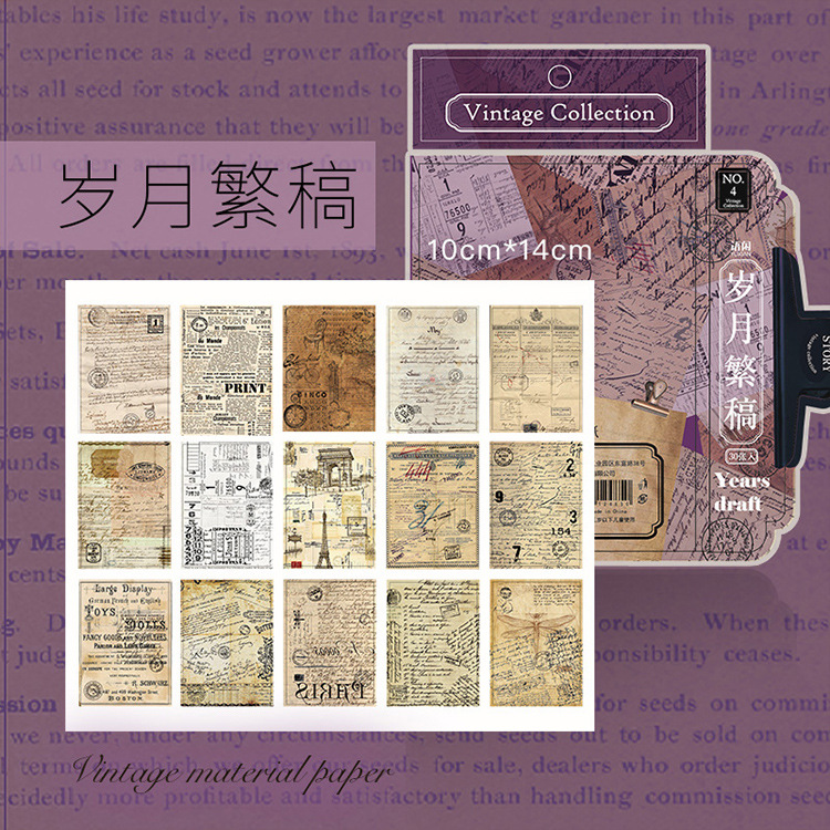 Material Paper Year and Month Tracing Series Retro English Magazine Journal Sulfate Paper Base Paper 30 Pieces 8 Models