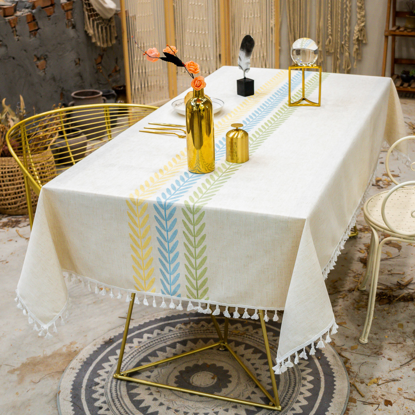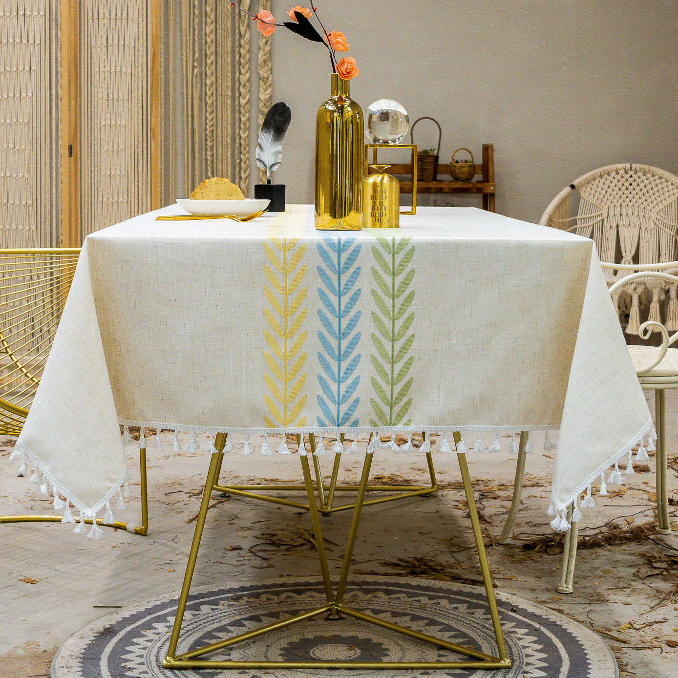 amazon cross-border northern european tassel table cloth embroidery leaves dustproof tablecloth cover towel