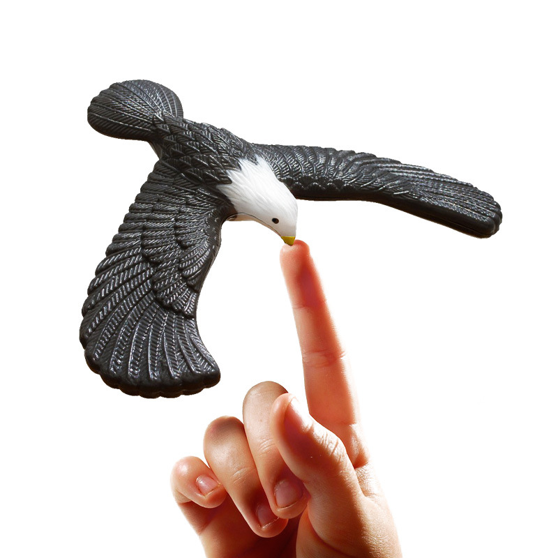 A toy that uses a hawk's beak to balance on a single point. When you place a hawk on a single point, such as a finger, it can balance stably without falling, just like a real hawk soars.