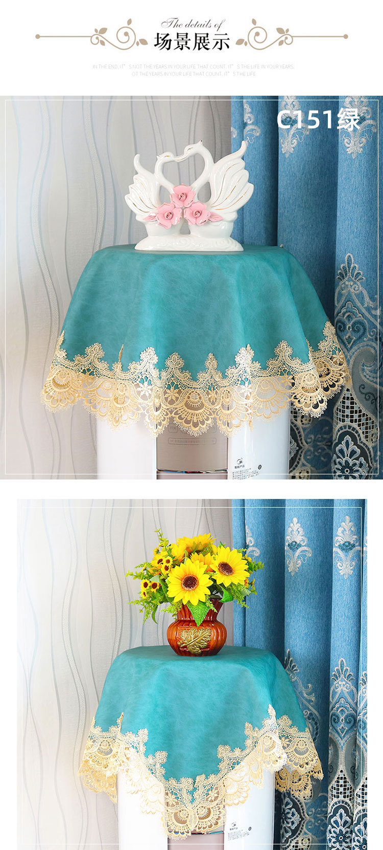 european-style light luxury lace round waterproof dustproof cylindrical air conditioning cover fabric vertical air conditioner cover dust cover towel