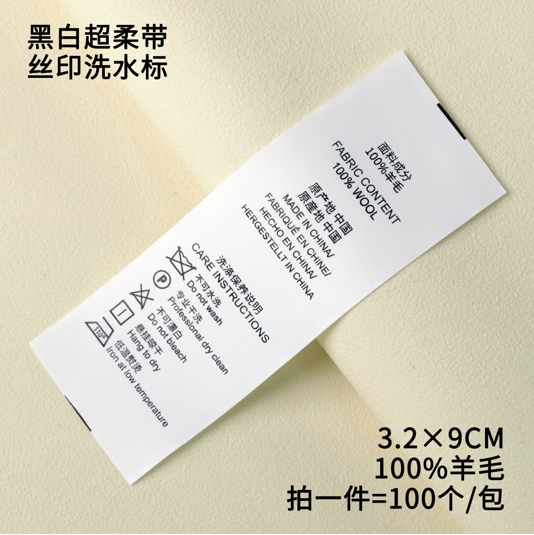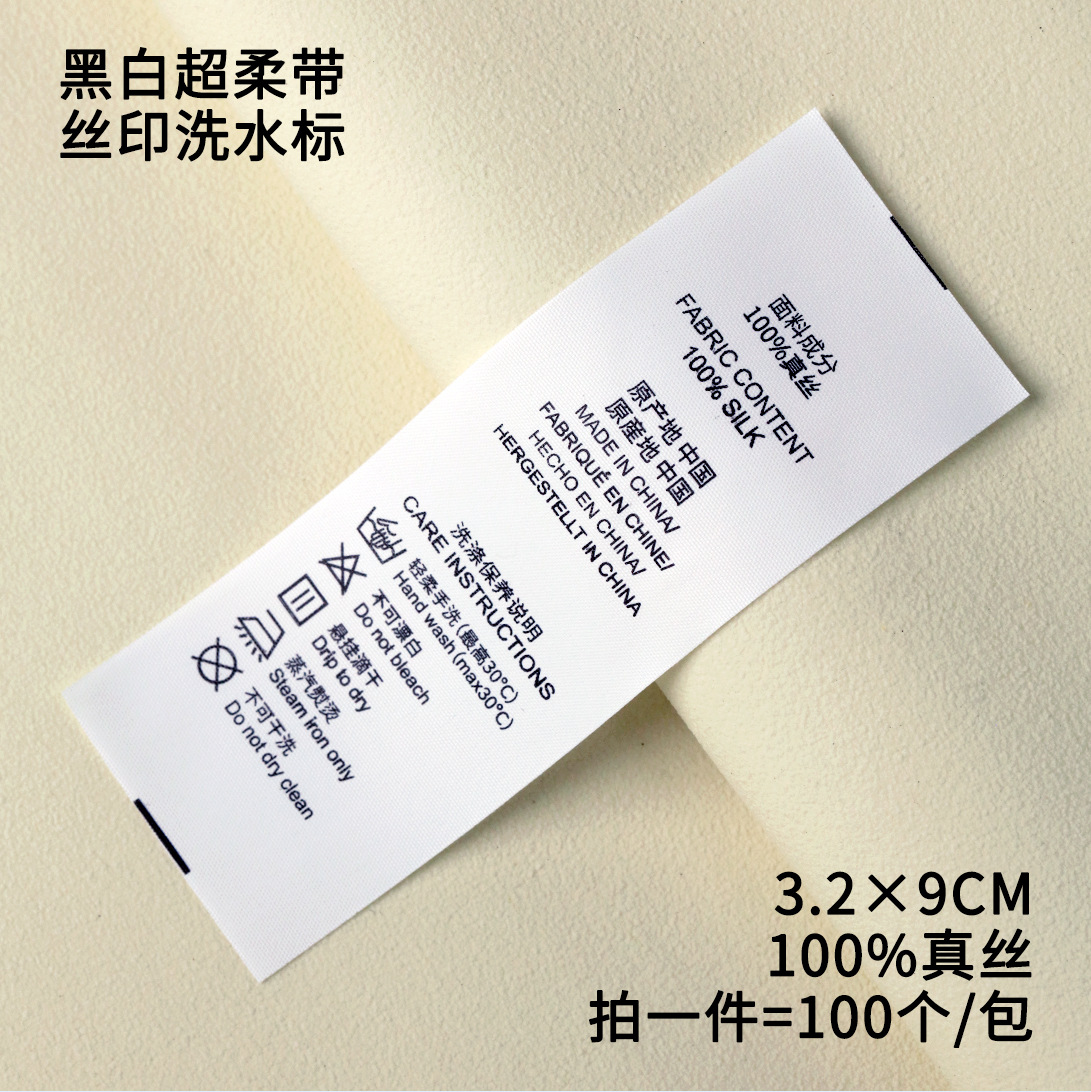 customized ingredients washing label super soft black and white universal clothing home textile extra soft washed mark label cotton silk linen