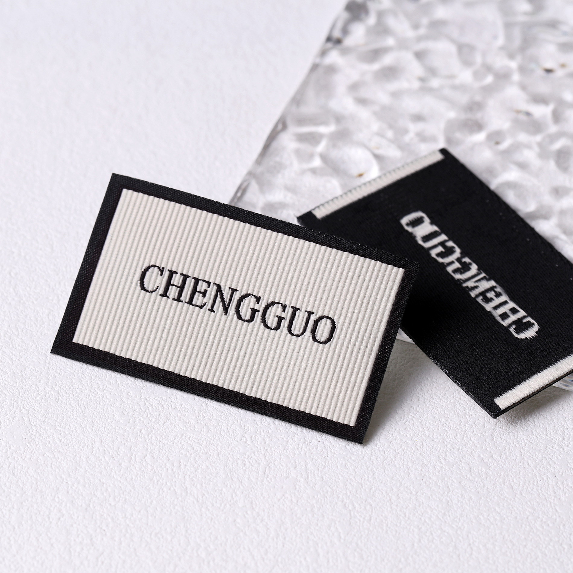 factory direct supply retro black frame collar lable high quality horizontal pattern weaving mark high sense characteristic trademark cloth label typesetting service