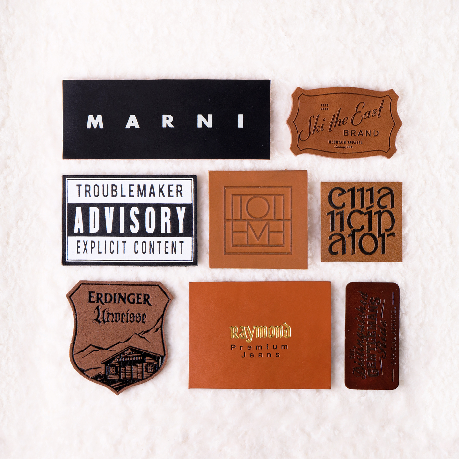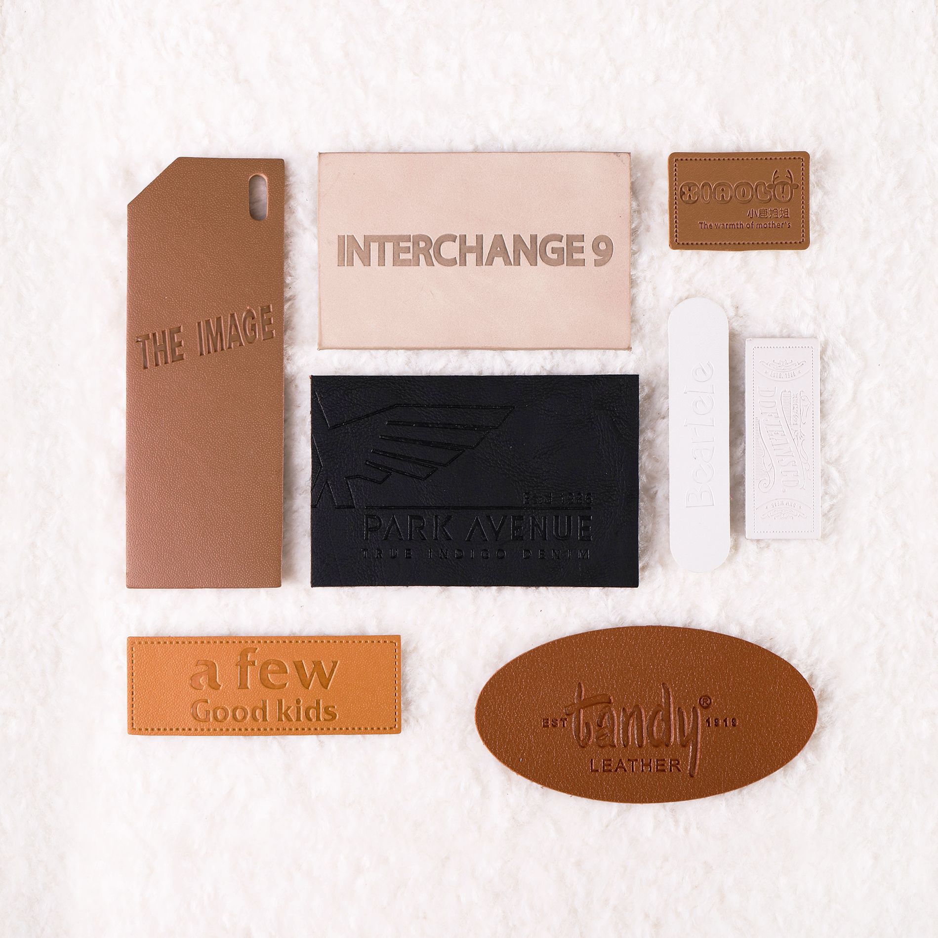 factory direct supply leather tag embossed logo first layer simulation pu leather trademark washed kraft denim pants logo