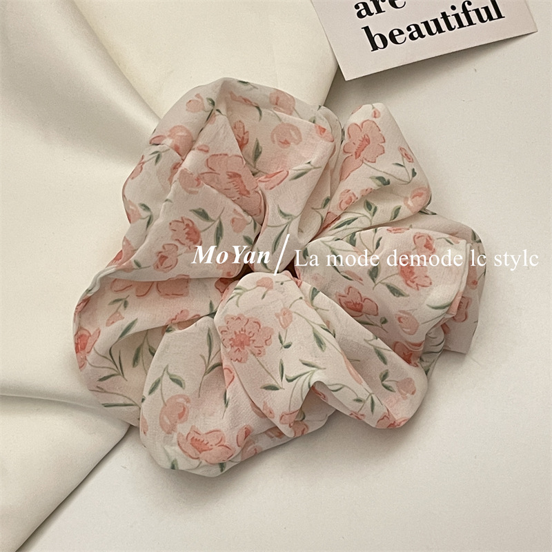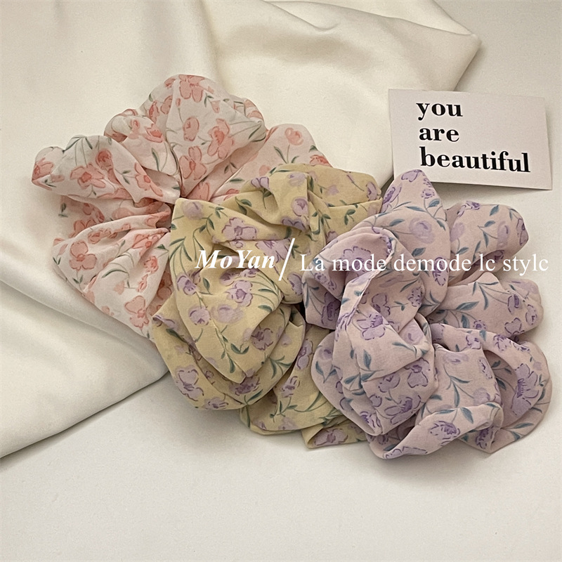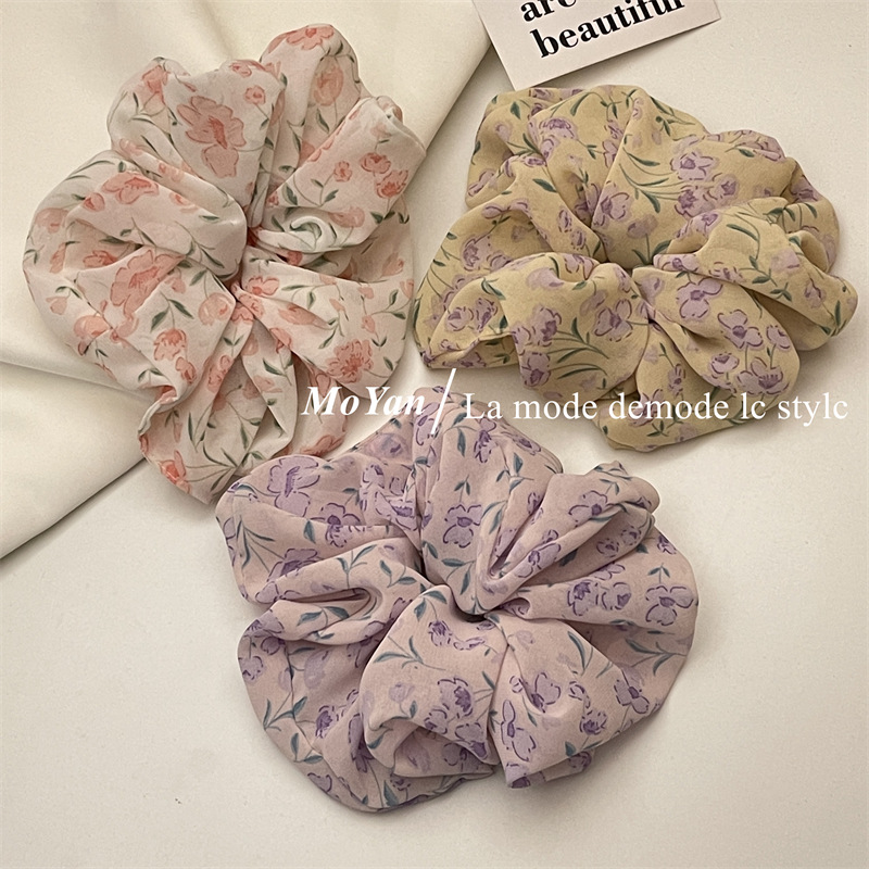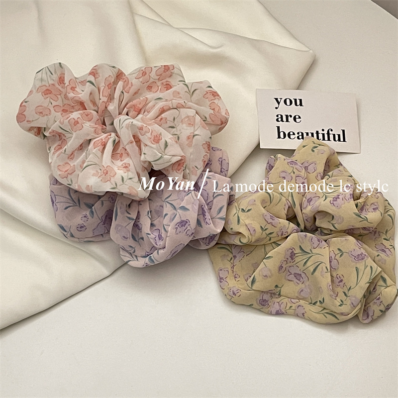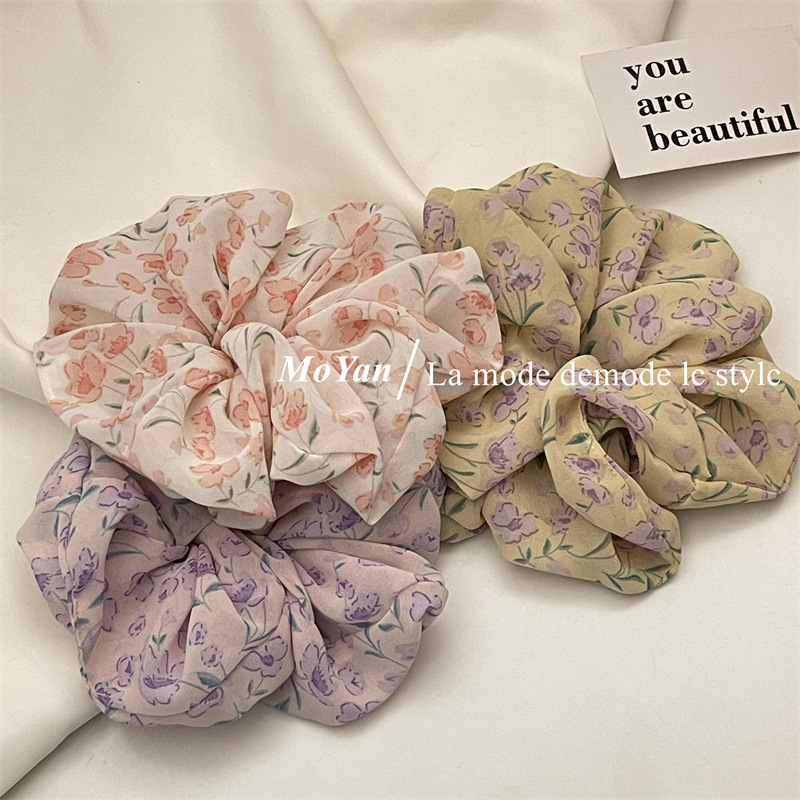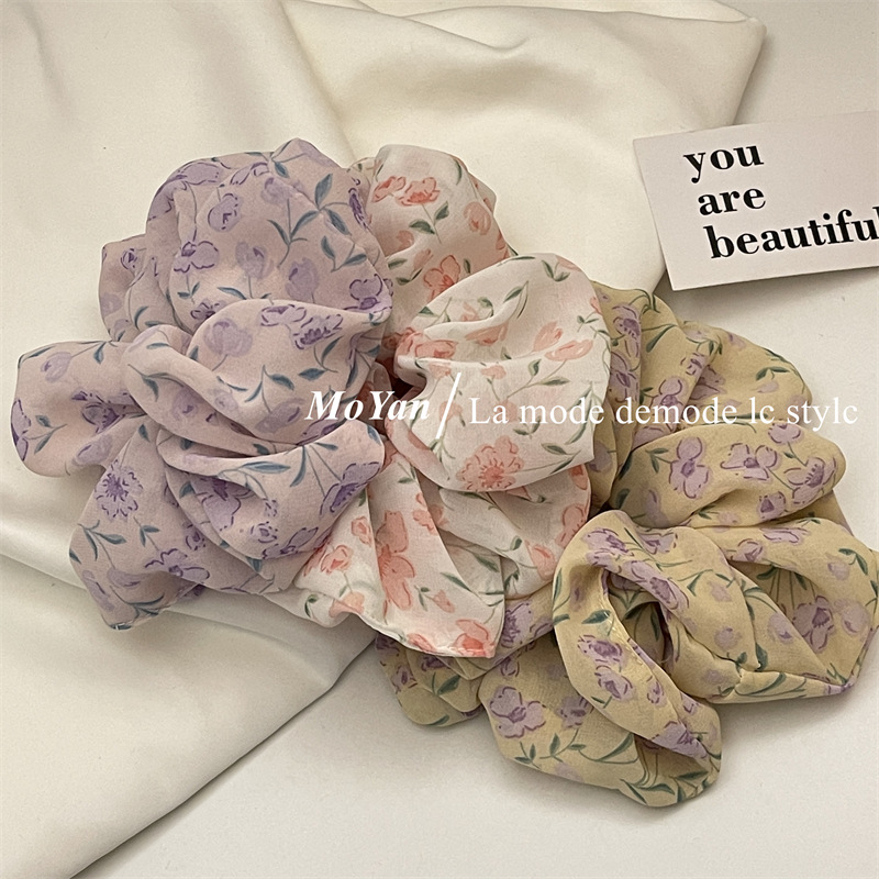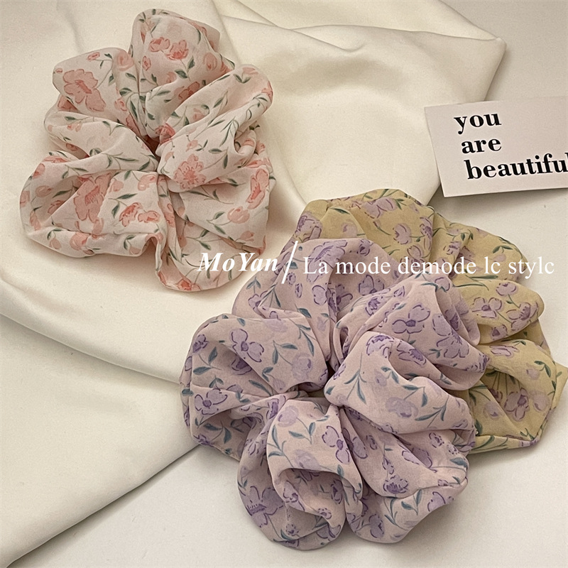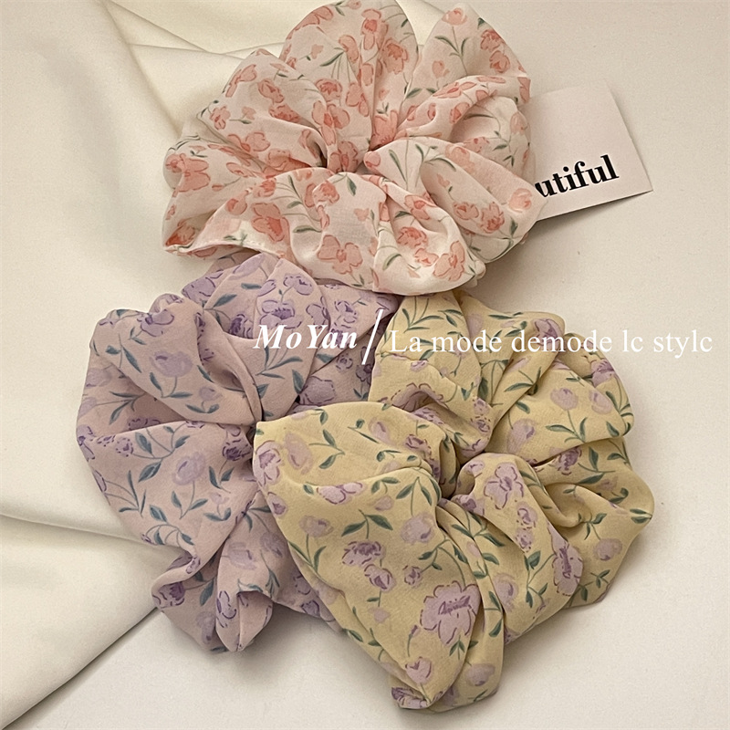 Violet Floral Spring Large Intestine Hair Band Mori Style Vintage Hair Rope Hair Rope Printed Girl's Hair Tie Ponytail Rubber Band