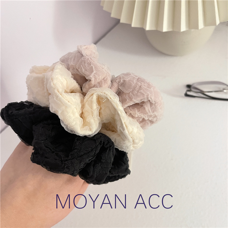 Korean Style Pleated Mesh Bubble Large Intestine Ring Temperament Wild Solid Color Fabric Craft Hair Ring Hair Rope Headband Spring and Summer Hair Accessories for Women