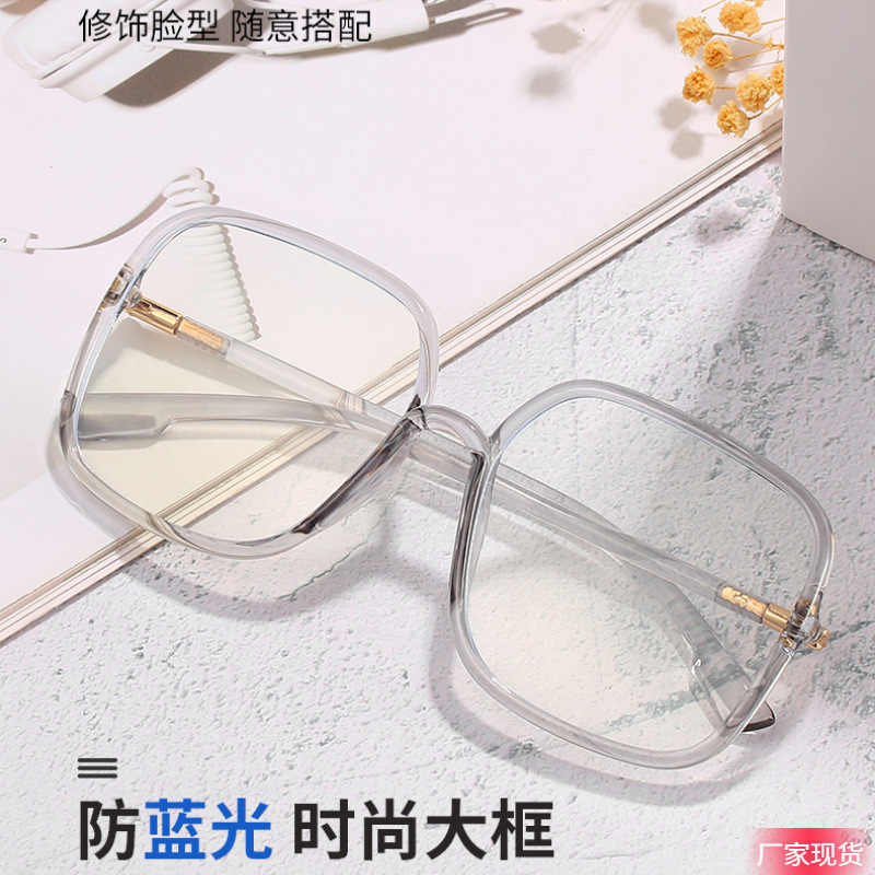 New Girls Large Rim Sunglasses Anti-Blue Ray Plain Glasses Fashion Slimming Zhou Yangqing Same Box Sunglasses
