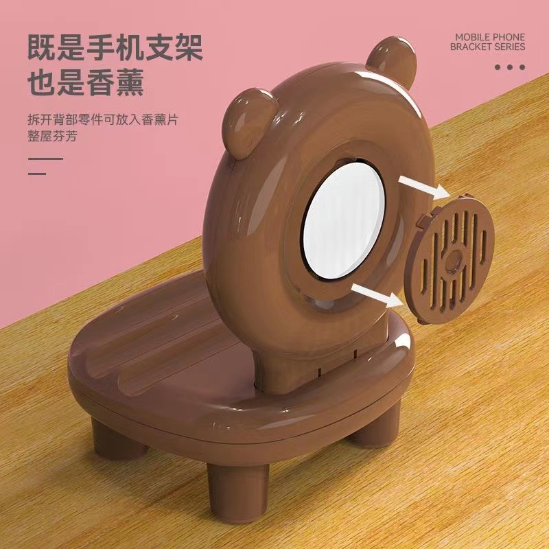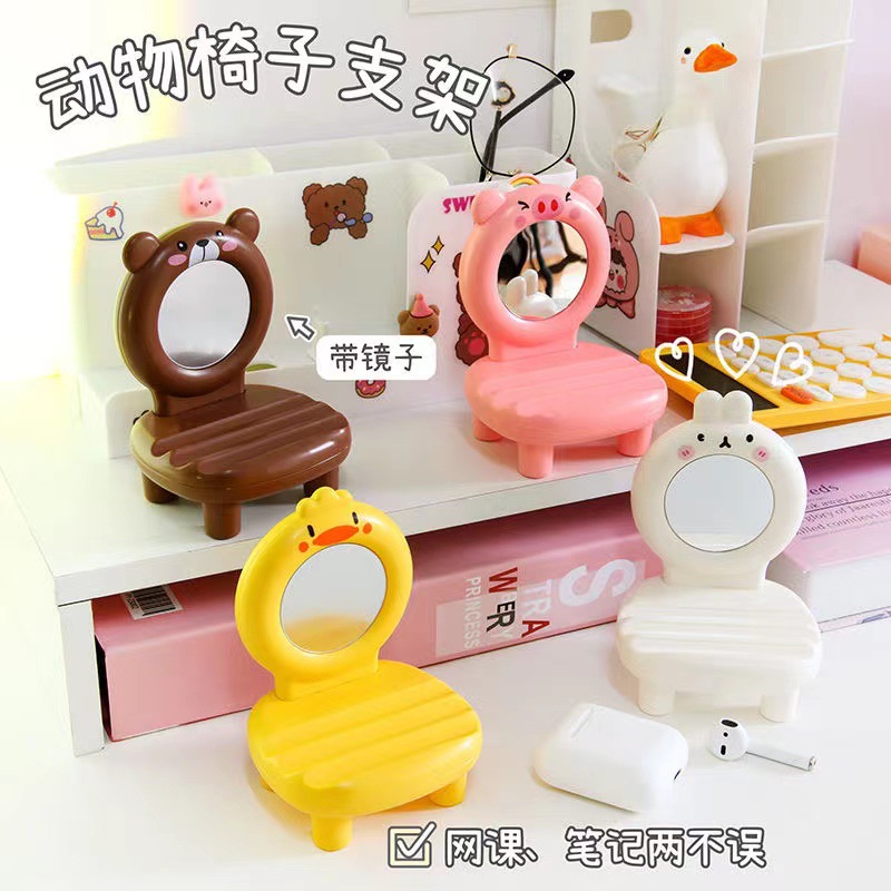 New Trending Cartoon Animal Mobile Phone Chair Support Desktop Phone Holder Creative Aromatherapy Binge-watching with Mirror