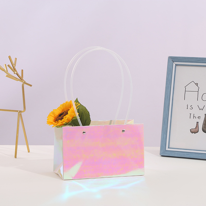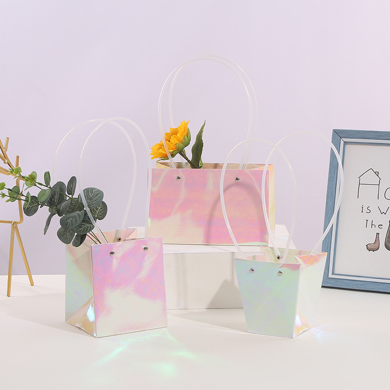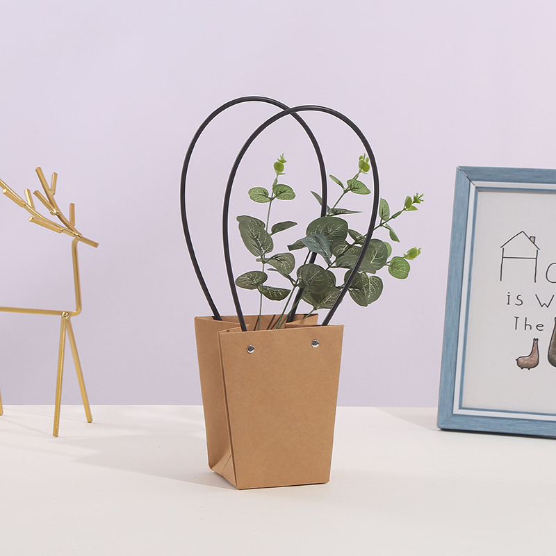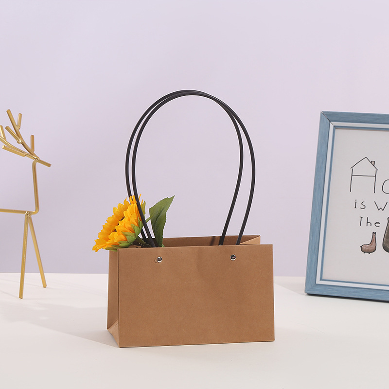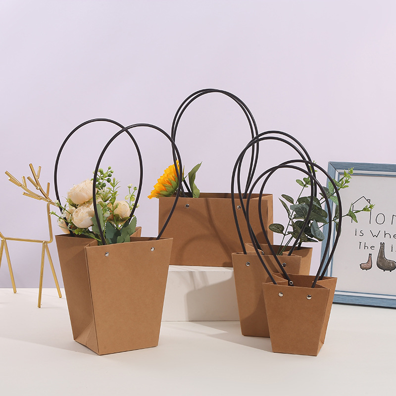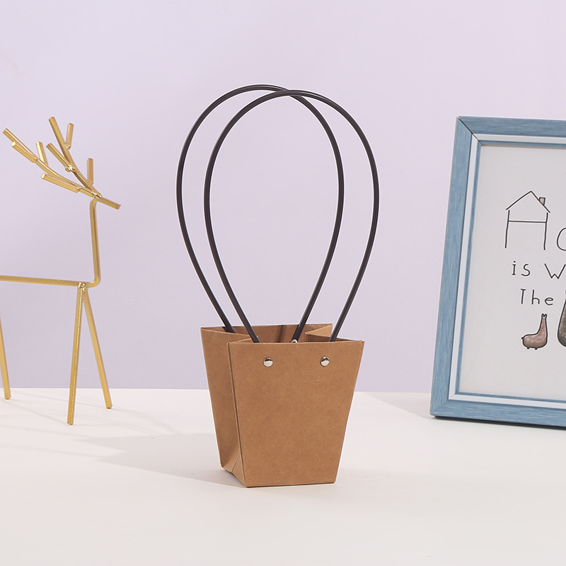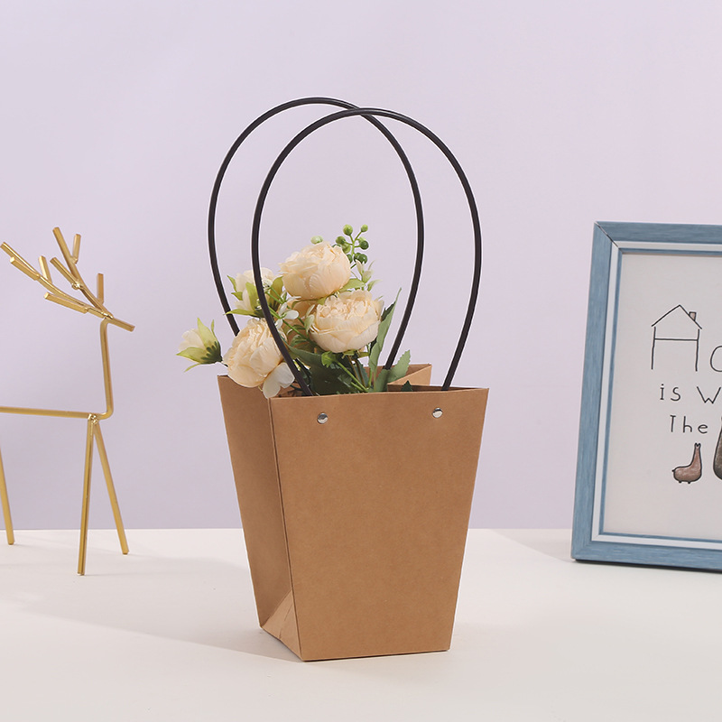 520 Valentine's Day Kraft Paper Bag Waterproof Flower Packaging Handbag Flower Basket Flower Arrangement Packaging Material Portable Flower Box