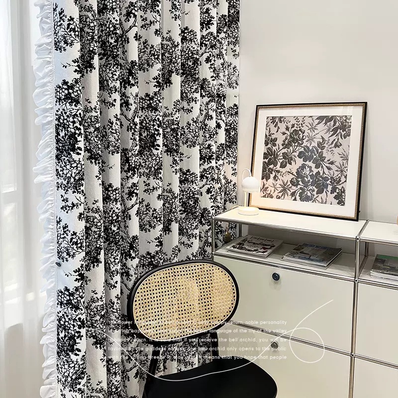 French Chenille Jacquard New Curtain Black and White Bayberry American High Shading Curtain Fabric Factory Direct Sales
