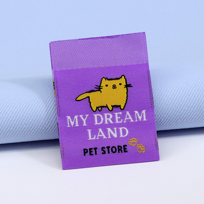 Apparel Woven Label Customized High-Density Three-Color Fold Collar Lable Main Label Mark Customized Logo Cloth Label