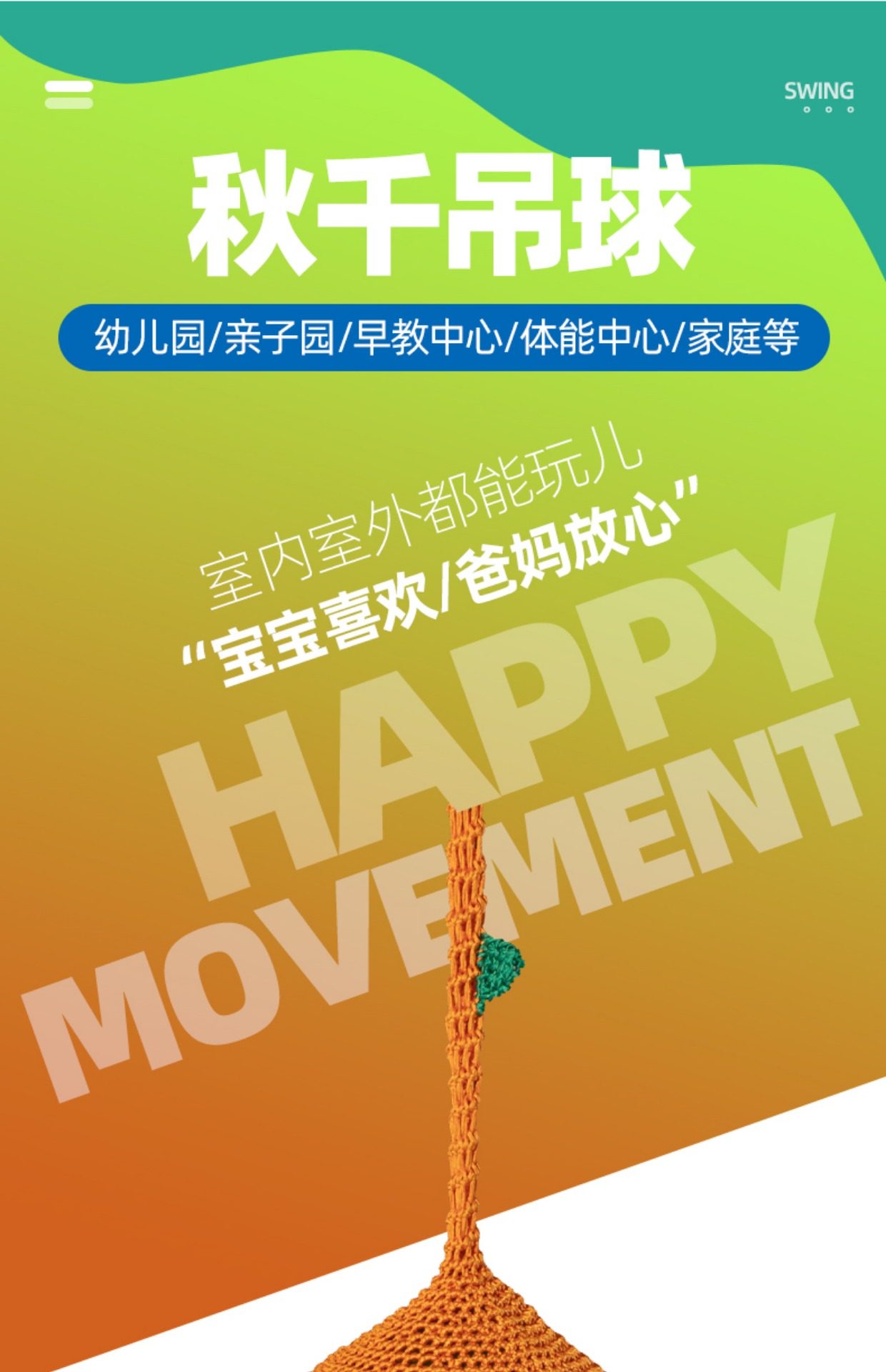 orange rope net woven hanging ball swing diameter 55cm
