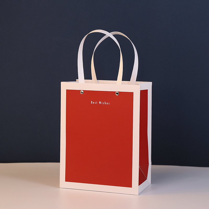 New Year's Day Red Gift Bag Neutral Simple Atmospheric Paper Bag Black and White Gift Bag Shopping White Card Handbag in Stock