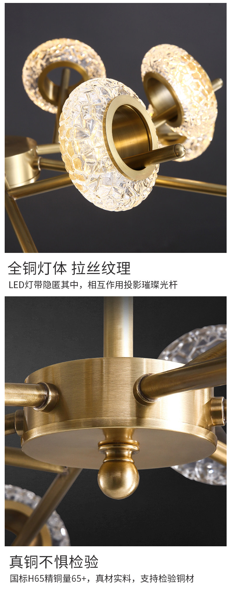 ice crystal pattern copper 8-head chandelier