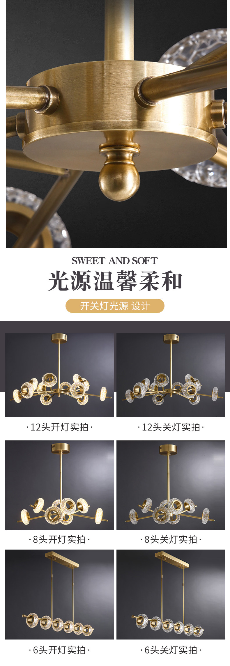 ice crystal pattern copper 12-head chandelier