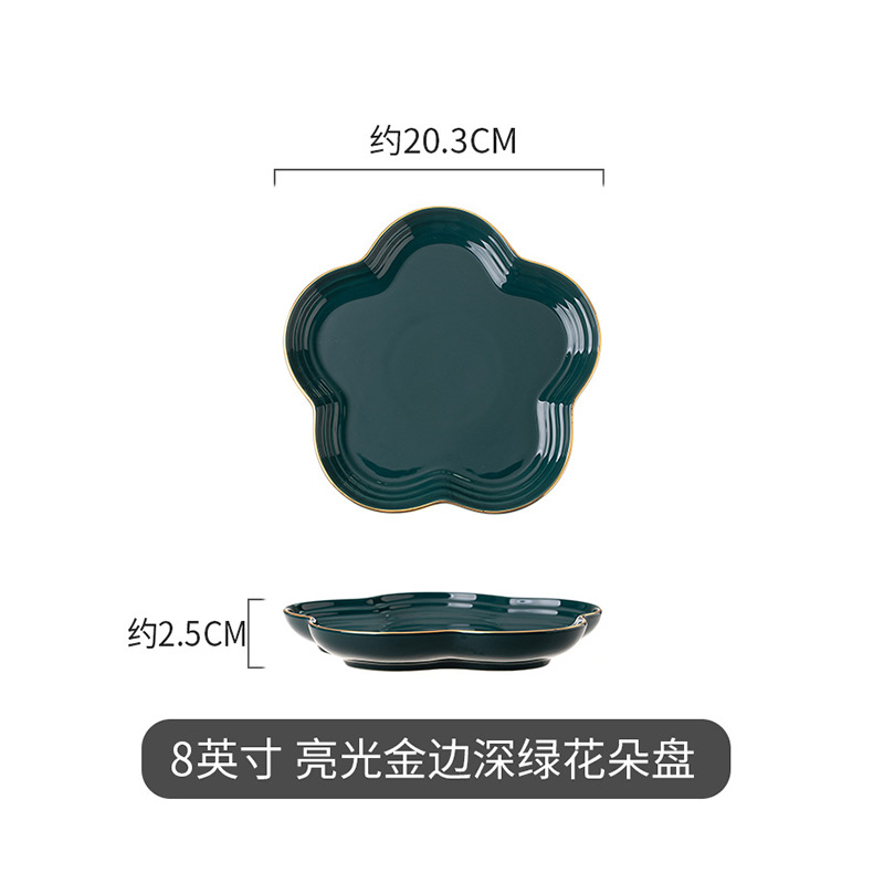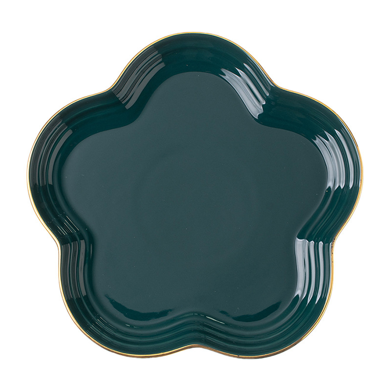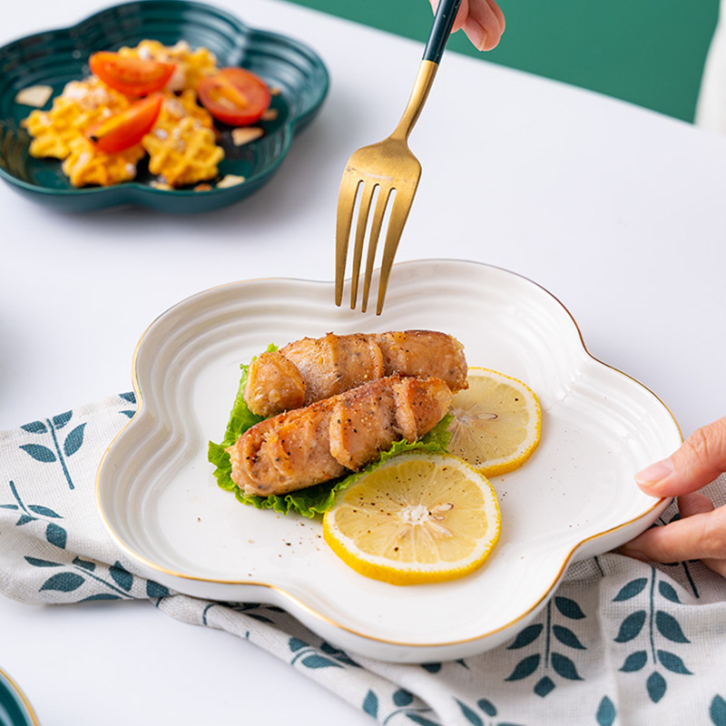 hotel supplies bright golden edge fruit ceramic flat plate underglaze household flower-shaped plate swing plate