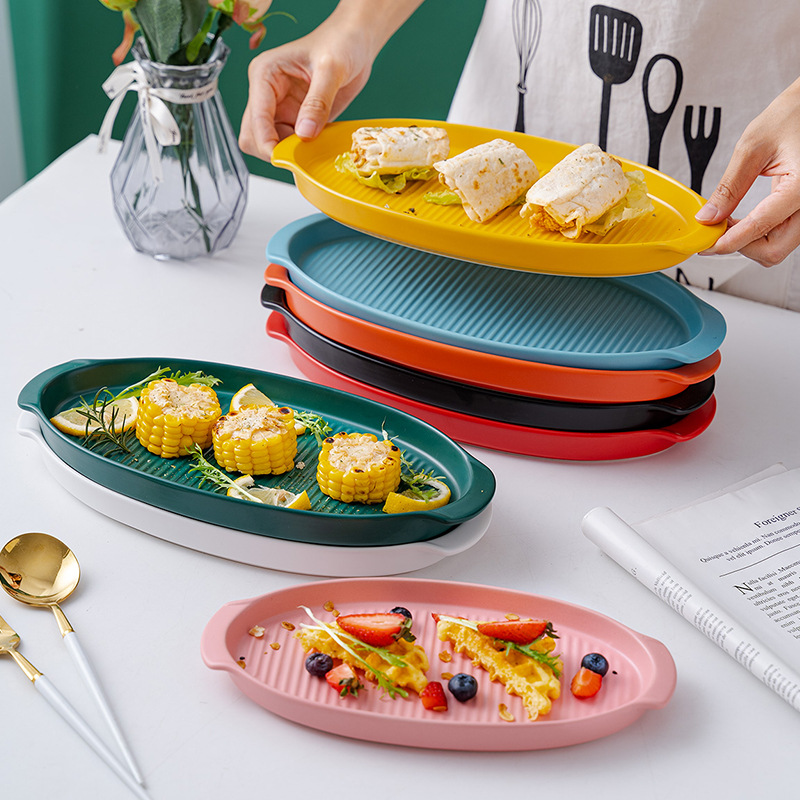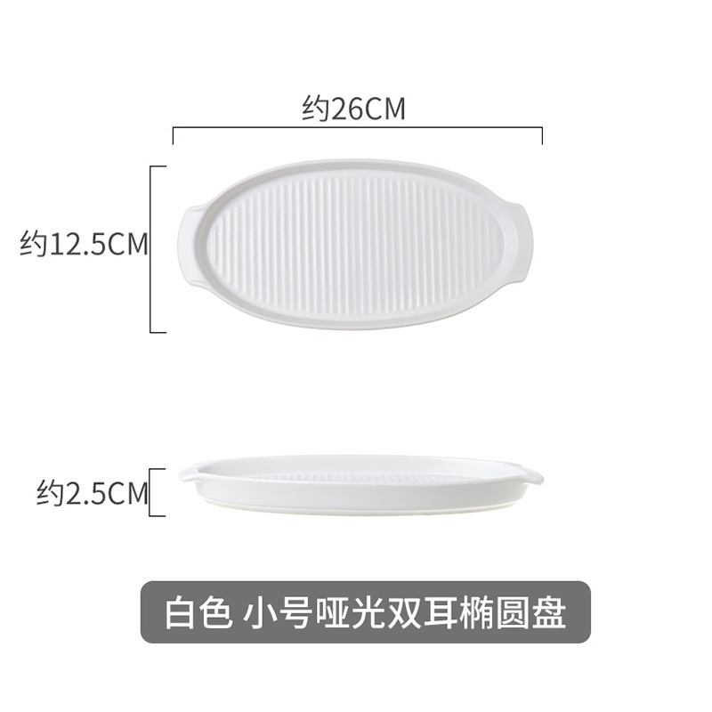 hotel supplies ceramic binaural oval dish 10-inch 12-inch steamed fish plate sushi baking tray