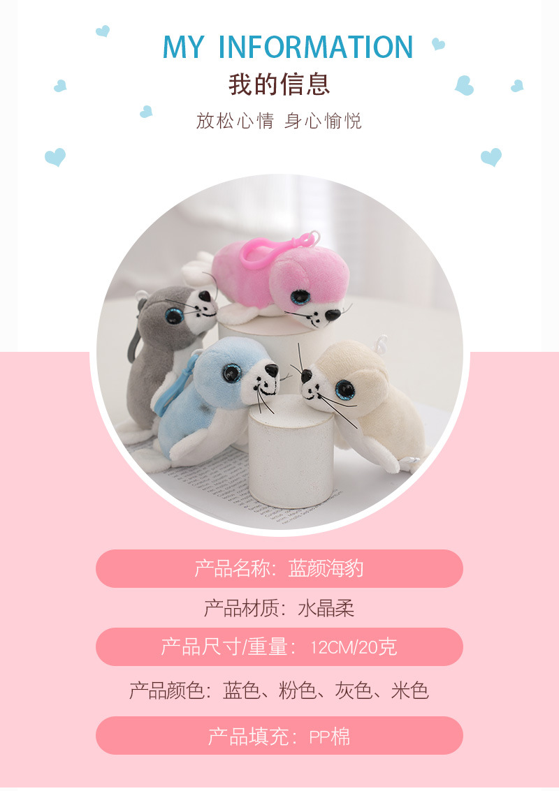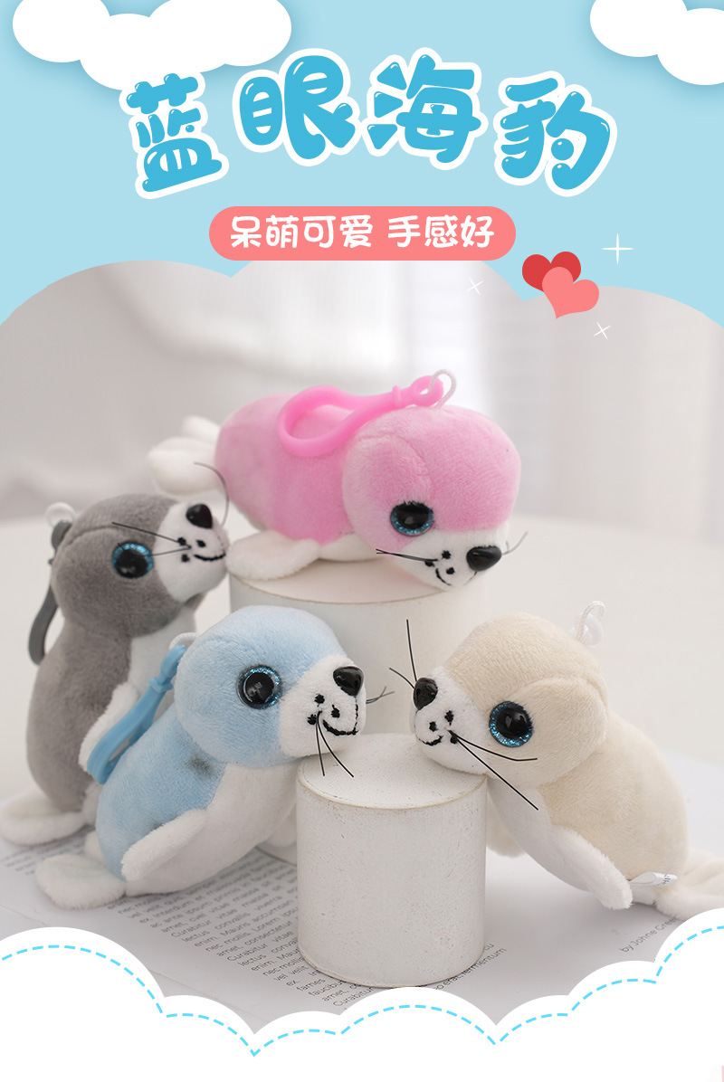 new cartoon blue eyes seal plush toy couple keychain doll pendant doll schoolbag pendant