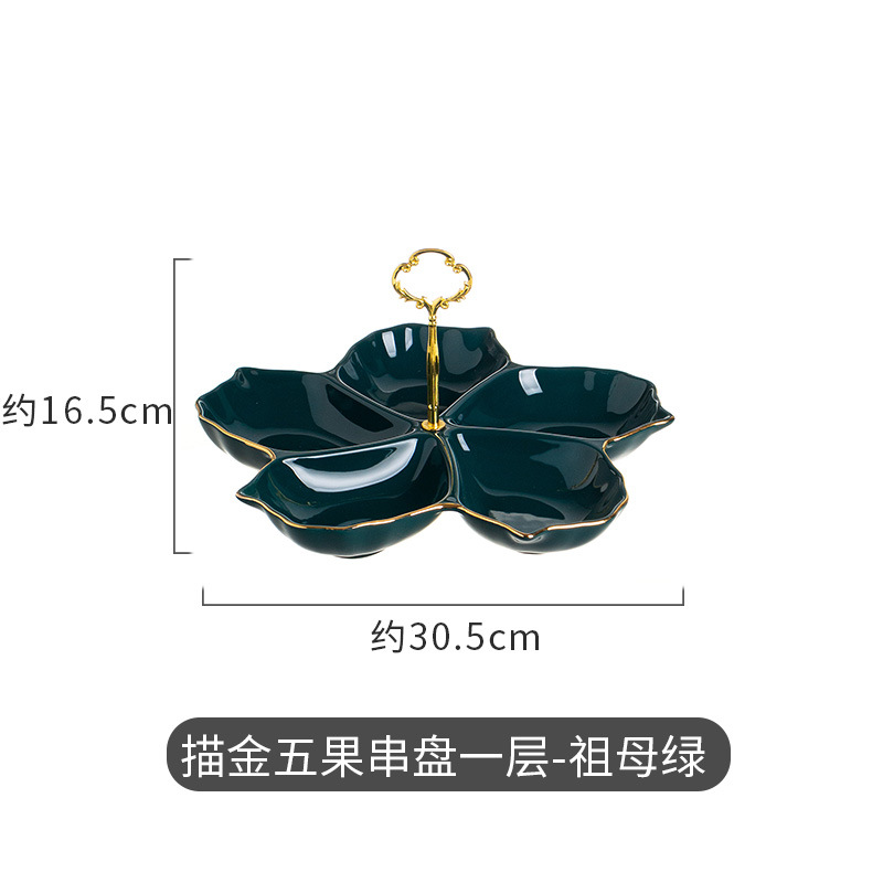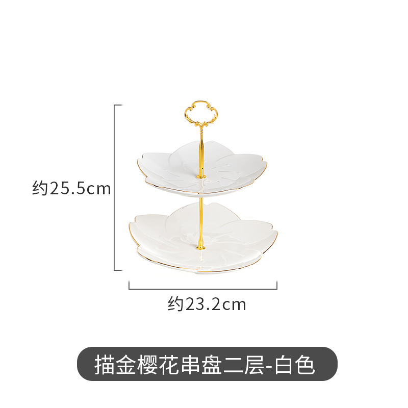 hotel supplies cherry blossom ceramic string disk five fruit dessert stand wedding banquet dried fruit snack multi-layer fruit plate