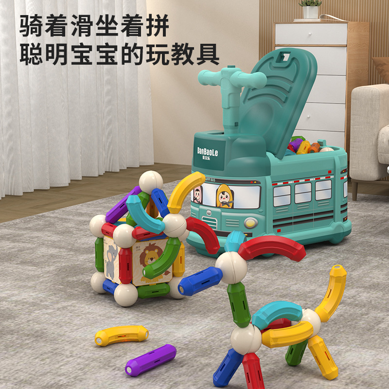 multifunctional school bus scooter: green (car + magnetic rods suit 96pcs)
